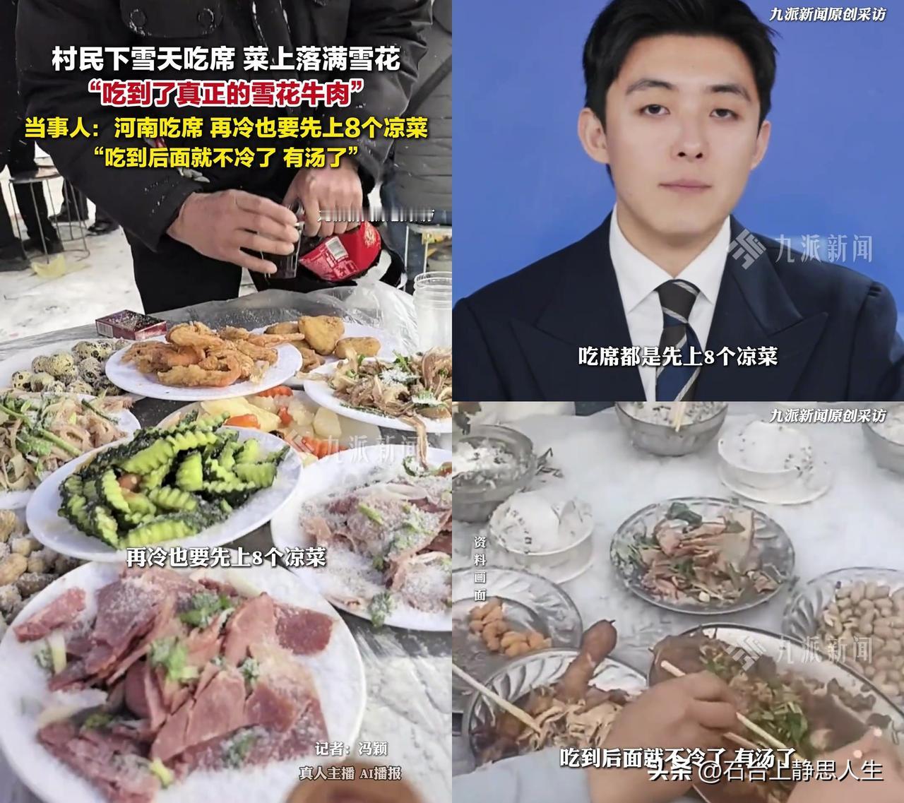 周口下雪天吃露天席,菜上落着雪,当事人说“必须先上8个凉菜”,我算看明白了,这哪