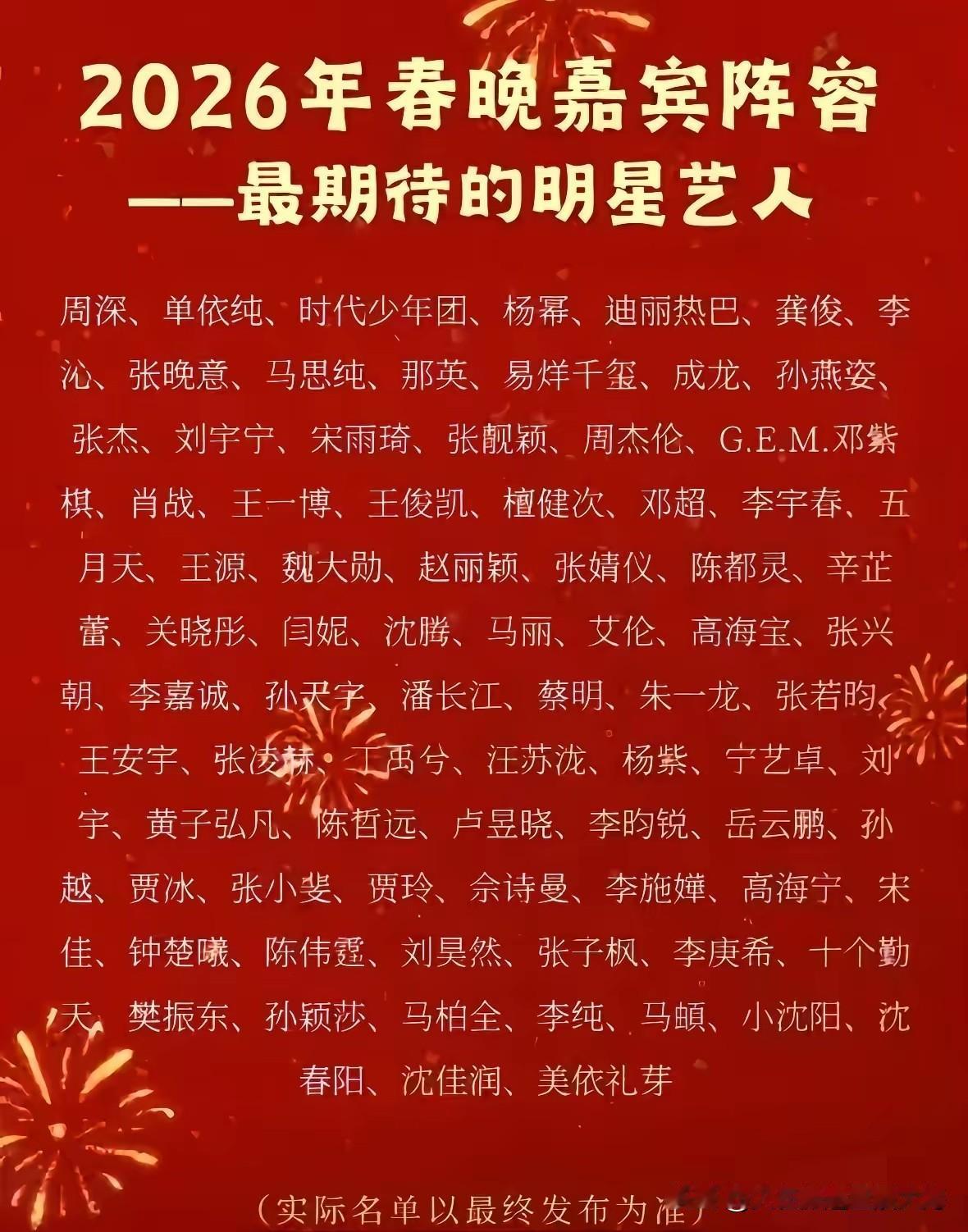 你会观看2026年央视春晚吗早都不看了,真的,管你是春晚夏晚秋晚冬晚还是彩釉晚跟我没一毛一分关系!自打“闫某晶事件”一出,我对任何花里胡哨的什么一级二级甚至三级冠以“国家”标签的演员都不再感兴趣!我与其浪费时间给他们坐钟涨粉,不如自己一家人在年三十晚上随心所欲的胡吃海喝自娱自乐!现在的春节大不如从前,年没年味春晚更不再是吸引人的唯一“定向目标”!印象中,手机时代电视退位,春晚舞台已经离我越来越远,自从老一代的文化巨匠一一淡出后,新上来的年轻人就只是个报名参演的轮侯剧组而已!但凡能上春晚舞台的人个个都是功利心,绝对算不上是货真价实的艺术家更非艺术品,根本就创造不出老百姓想要的亲和融洽气氛!你仔细观察,每年除夕,央视春晚直播大厅第一排就座的不是受邀的企业老总赞助商就是又陌又生的所谓“精英”阶层,真正来花钱捧场的观众都位居其后!三四十年前,朴实无华的春晚现场马季先生兜售“宇宙牌香烟”、歌手张明敏放歌一曲《我的中国心》是比春晚导演还出彩的“灵魂工程师”!而今,珠光宝气的主持人换了一茬又一茬,舞台上也够星群闪烁,可怎么就“品鉴”不回1984年的原汁原味呢?春晚时间安排春晚阵容预测 2026年晚会 春晚建议春晚市场化 春晚民调 春晚分析 冬日生活打卡季