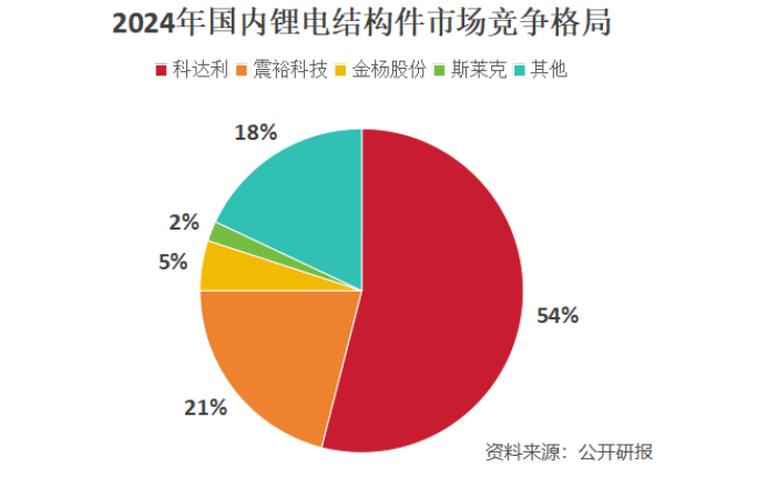 2015年,公司进军该领域。虽为结构件行业后进入者,但其通过绑定宁德时代实现了市占率快速提升。数据显示,2024年震裕科技锂电结构件营收约42亿,市占率已至20%,仅次于科达利,稳居行业第二。