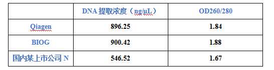 基于上述提取浓度与纯度的对比结果,Qiagen与BIOG试剂盒均表现出优异的提取性能,能满足后续高通量测序、PCR扩增等分子实验要求。Qiagen作为进口品牌,性能稳定但价格较高,适合经费充足的实验室选用;BIOG则在保持相近提取效能的同时具备更优的性价比,适合注重成本控制且追求高质量提取结果的研究者。