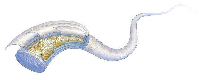 成卷的纤维芯片和装有纤维芯片的器件图(袁婧摄)