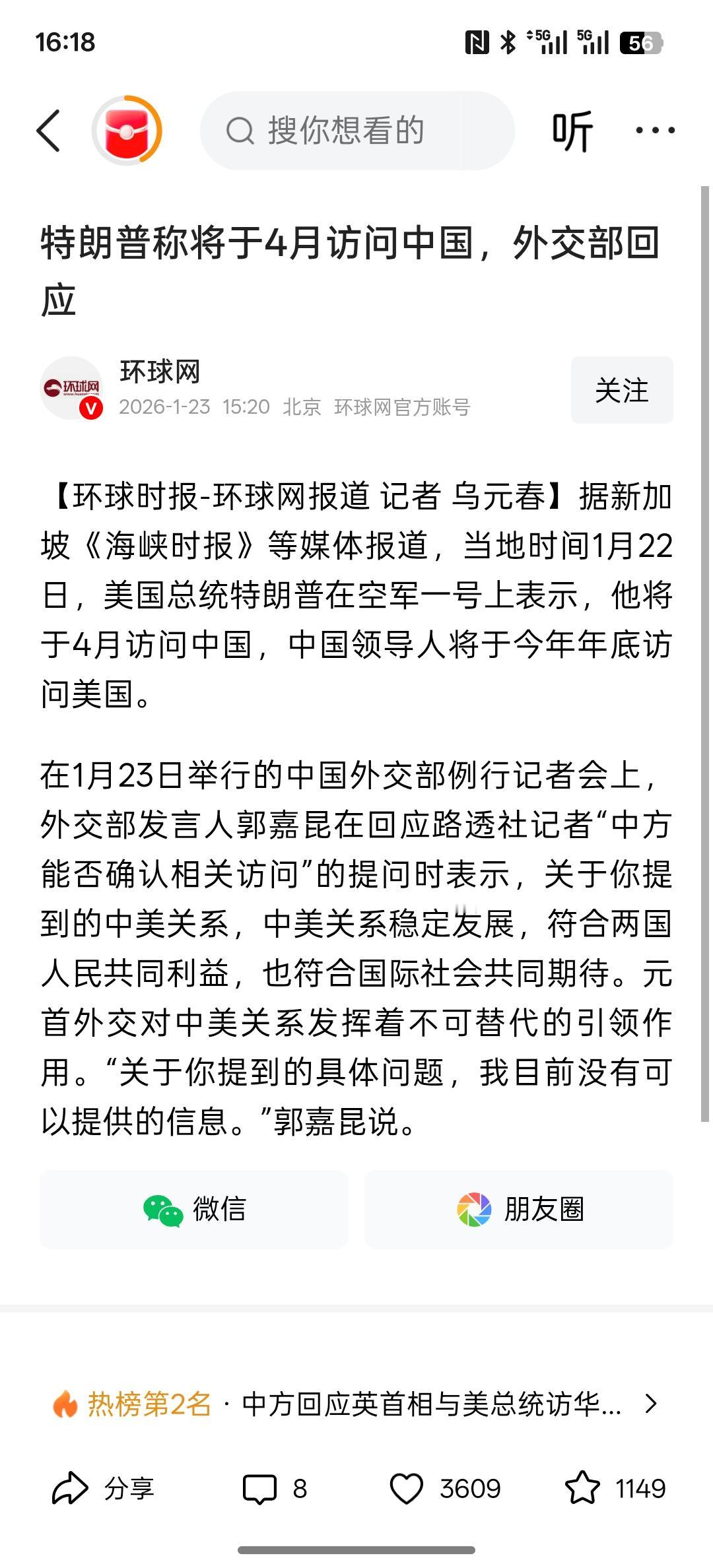 特朗普称将于4月访问中国,最终好像国内也没有说让特朗普4月访问中国!回答的是没有信息可以提供!也有可能特朗普在为访问中国开始吹风呢! 其实美国是有意愿要访问中国!毕竟美国自身国内矛盾相对比较严重,目前与中国在贸易战问题上面已经休战,而特朗普现在主要精力是放在欧洲跟西半球!美国继续与中国进行贸易摩擦,美国根本就顾不过来!西半球的战略就没办法实施!
