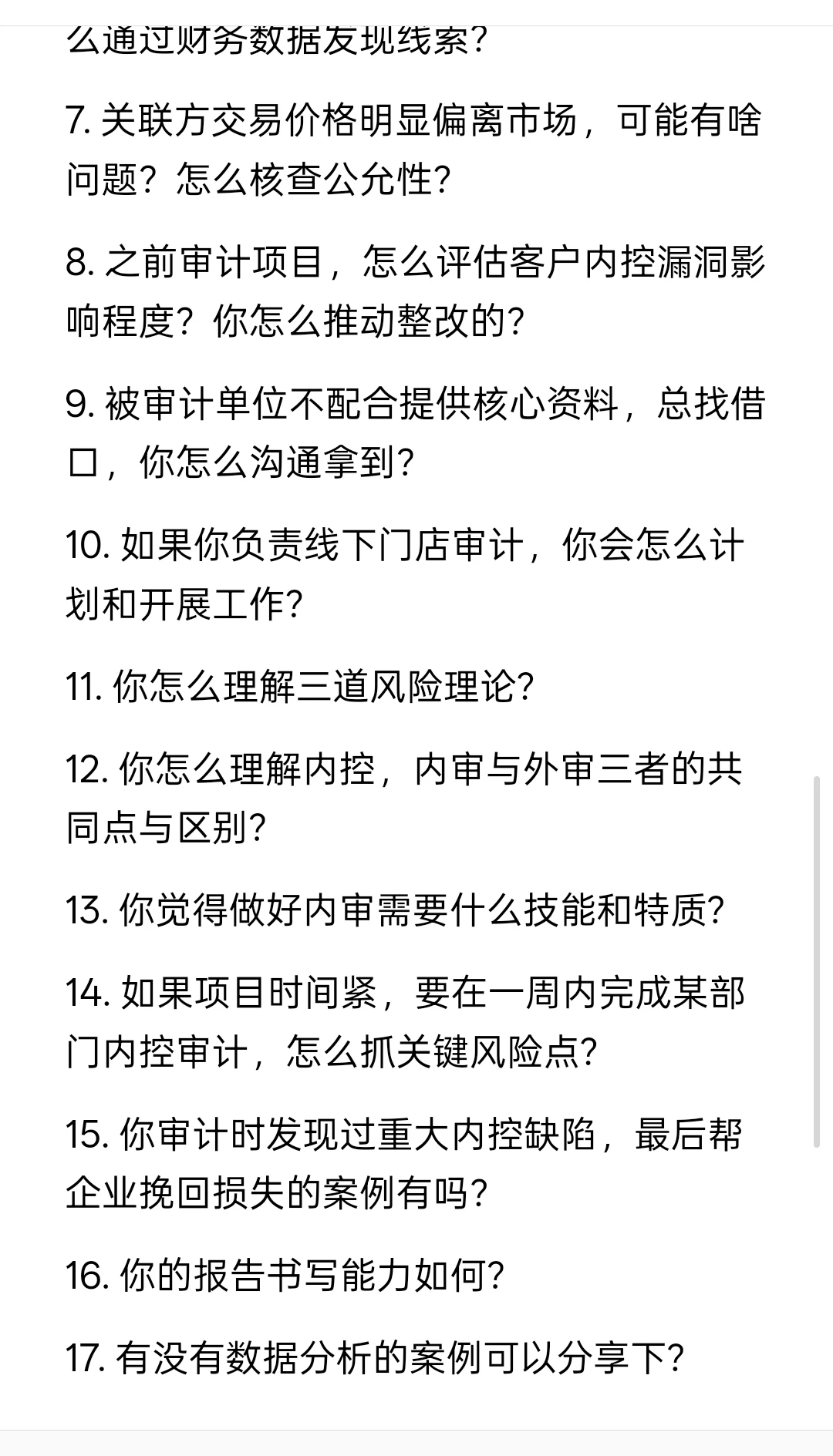 8. 之前审计项目,怎么评估客户内控漏洞影响程度?你怎么推动整改的?