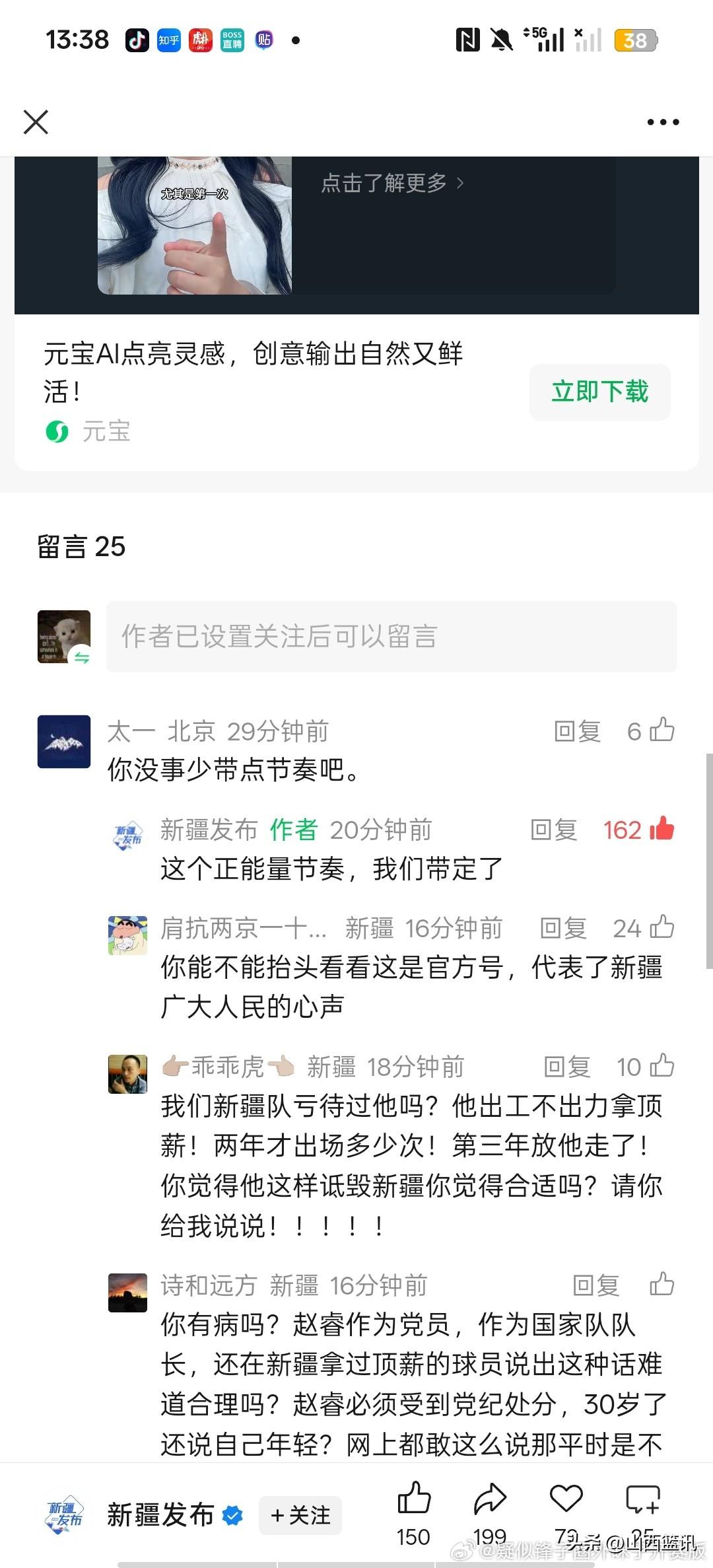 新疆官方再次表态:新疆人就要把正能量的节奏带下去。 现在这个气氛就是于无声处,总感觉赵睿的事情不可能不了了之!双方正在僵持着,赵睿认为,我都道歉了,还要我咋滴?新疆官方要求暂停其篮协会员资格。篮协被抬在明处,怎么办?全国人民都盯着这事。 事情就是这么冲,赵睿说“新疆边上待一待”,新疆官方“新疆发布”就不想边上待着发声了,代表赵睿方的北京球迷不愧为“京油子”,竟然怼“新疆发布”说“你没事少带点节奏”!“新疆发布”不惯他着逮住谁说谁的毛病,直接怼人回去“这个正能量节奏,我们带定了”! 常言道:邪不压正。这次新疆官方“新疆发布”所提出的要求会不会有结论?如果没有“新疆发布”所追求的结果,那么是不是意味着正义无路可走?