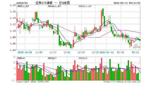 2月12日,证券ETF浦银(516730)开盘涨0.09%,报1.073元。证券ETF浦银(516730)重仓股方面,中信证券开盘跌0.04%,东方财富跌0.09%,国泰海通跌0.20%,华泰证券涨0.00%,广发证券跌0.09%,招商证券跌0.17%,东方证券跌0.10%,兴业证券跌0.29%,申万宏源涨0.20%,中金公司跌0.14%。