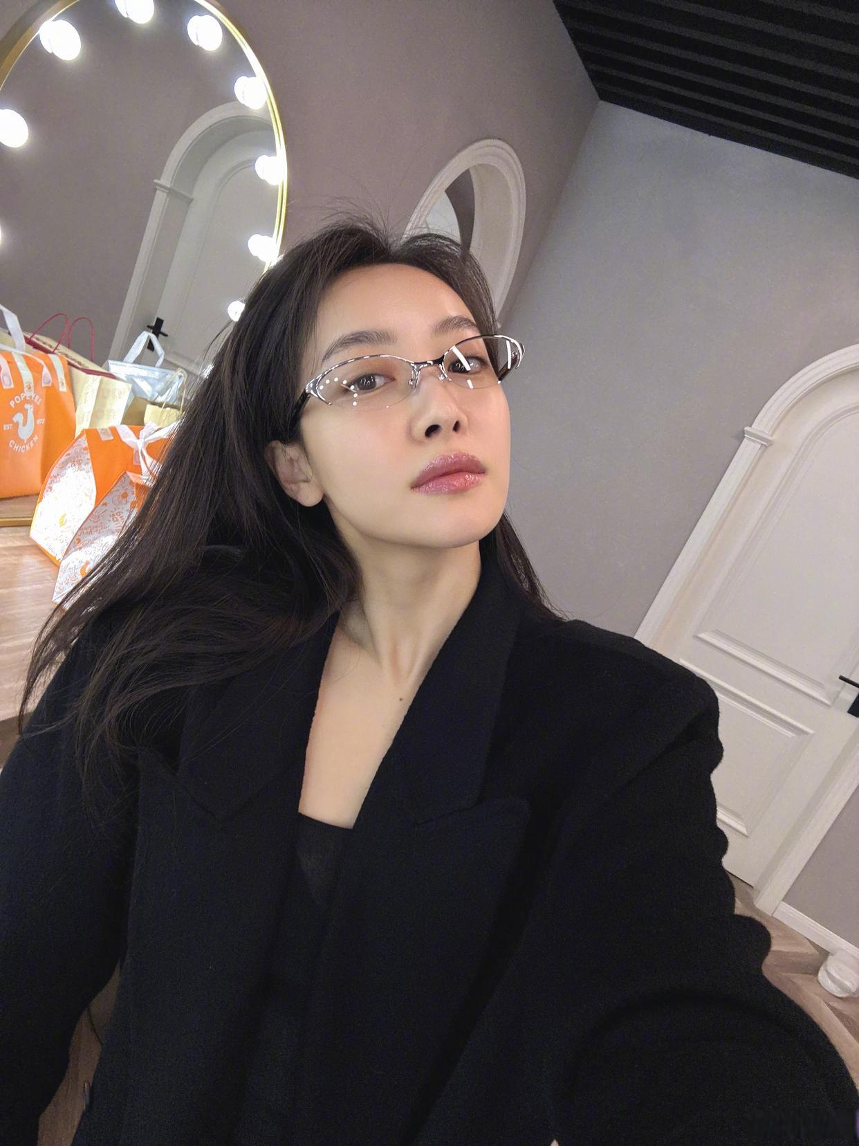 周雨彤是懂时尚穿搭的,卷发黑裙,满满的优雅格调。周雨彤