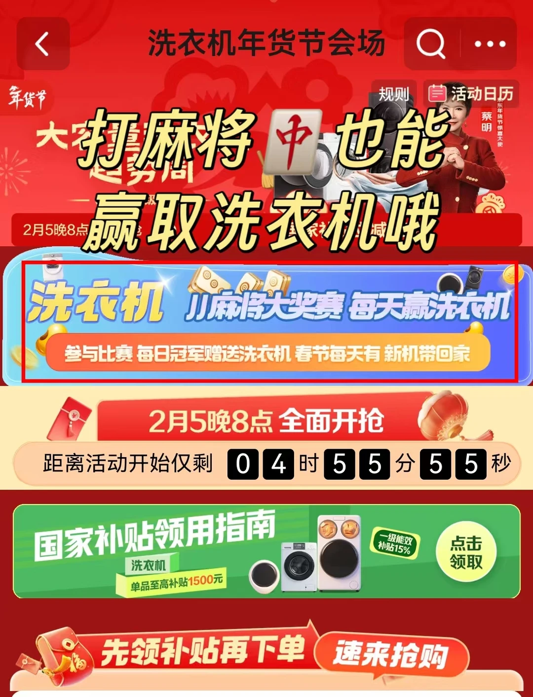 不管是租房党换小型波轮,还是大家庭换10KG大容量滚筒,或是追求品质选洗烘套装,京东这次都给足了专属好价,权威补贴+限时福利+麻将赢机,引流紧迫感直接拉满,新年想提升居家幸福感,换洗衣机就冲这波!