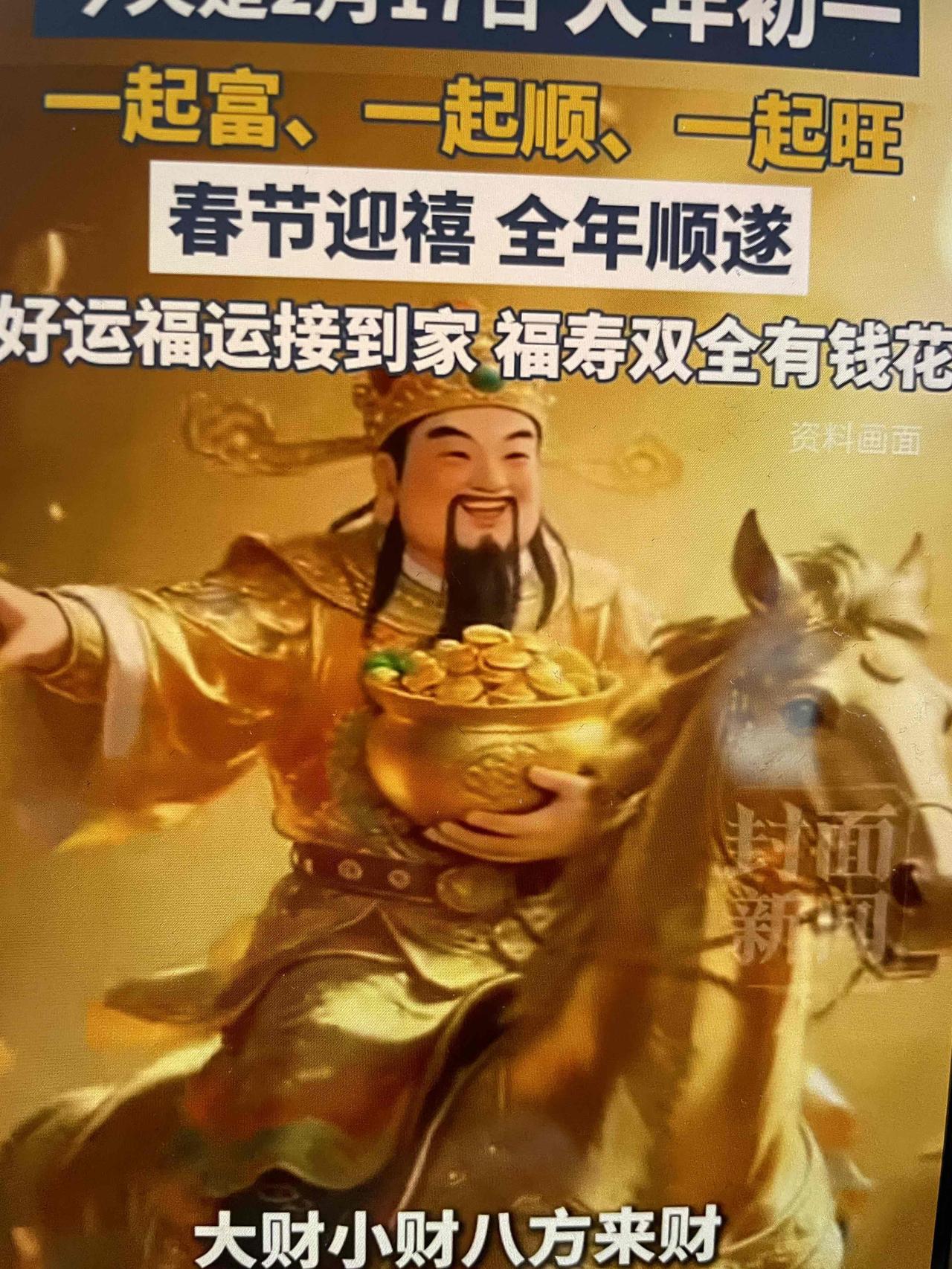 2月17日,大年初一,我妈一大早就把我喊醒,让我赶紧刷手机,说今天刷到啥喜庆的都得存着,今年想不旺都难🔥 这不,刚刷到这组画面,财神爷骑着马,捧着金元宝就来了;街头巷尾灯火通明,人挤人都是盼着沾喜气;还有满屏炸开的烟花,红得晃眼,看着就心里热乎✨ 今年就认这三句话:一起富、一起顺、一起旺! 好运福运接到家,不管是手里的票子,还是家里的日子,都要稳稳当当往上涨; 福寿双全有钱花,大财小财八方来,马年的每一步,都踩在吉利上🐎 我先接了!今年你最想实现的小目标是啥?暴富还是暴瘦?评论区留个“接好运”,我帮你一起接!初一走运 赶早回家迎喜神