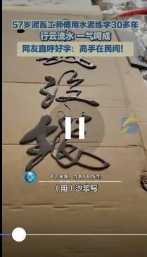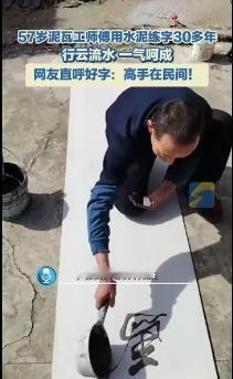 水泥地上挥毫30年!山东日照57岁泥瓦工大叔以砂浆为墨写出行云流水,网友泪目:这才是真正的“匠心” 在山东日照的某个工地角落,一位57岁的泥瓦工师傅俯身蹲下,手持寻常的抹灰工具,却以水泥砂浆为墨、地面为纸,行云流水般写下苍劲大字。视频传开,瞬间引爆网络——谁能想到,那布满老茧的双手,竟藏着三十年如一日的笔墨江湖? 没有宣纸,没有砚台,只有粗糙的水泥和嘈杂的工地。可他一笔一划间,却透出令人震撼的从容力道。网友惊叹:“这字里带着风骨!”原来,真正的热爱从不挑环境。泥灰飞扬中,他默默耕耘的不仅是生计,更是灵魂深处那片桃花源。 三十年来,他从青涩小伙写到两鬓斑白。别人休息时抽烟聊天,他却找块空地,蘸水为墨,默默练字。水泥干得快,须一气呵成,这反倒练就了他腕下生风的功力。他说:“写字让我静心。”这份朴素执着,恰是浮躁时代最稀缺的“匠心”。 爆火之后,老师傅依然平静。他婉拒了许多“网红”邀请,只说:“我就是个干活的,写字是爱好。”这份清醒,让人肃然起敬。在这个追逐流量的年代,他守住了那份纯粹的快乐——艺术本就不该被镶在框里,它可以在任何地方生根发芽。 我们为何感动?因为在他身上,看到了平凡人对抗庸常的微光。没有舞台、没有掌声,只有日复一日的坚持。这种“无名之辈”的浪漫,恰恰击中了无数为生活奔波者的心——原来,梦想真的可以握在沾满泥灰的手中。 他的故事像一面镜子,照出我们久违的初心。多少人的爱好败给了“没时间”“没条件”?可这位老师傅告诉我们:热爱本身,就是最好的条件。水泥地亦可作宣纸,平凡日子也能活成诗篇。 如今,越来越多的人开始关注身边“隐藏的高手”。菜市场挥毫的卖肉大叔,工地弹吉他的钢筋工……这些鲜活的故事让我们相信:才华从不分庙堂与江湖。只要心中有火,哪里都是舞台。 致敬所有在尘埃中绽放光芒的普通人。你们让世界看到:生命的热度,从未被身份定义。这片土地上的“匠心”,正藏在每一个不曾放弃的日常里。 (来源:闪电新闻、当事人采访及网络综合) 高手在民间 匠心精神