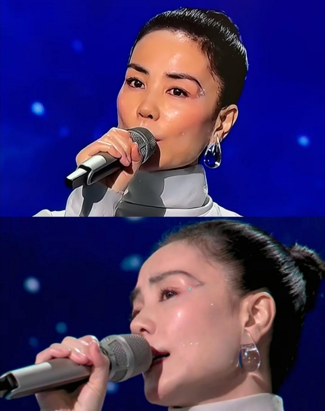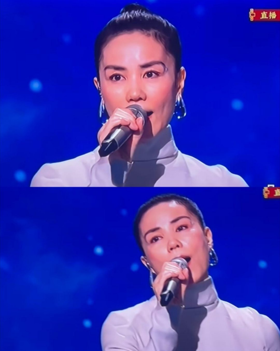 谁给王菲画的眉毛?化妆师能不能出来挨打,这个眉毛怎么修的这么怪,是在cos天线宝宝吗?看着跟耷拉着眼睛一样 ,差一点就跟眼线连上了,贴头皮的大光明发型也挺“秃”然的,姐这是又打算引领什么新时尚吗?真是有点欣赏不来…
