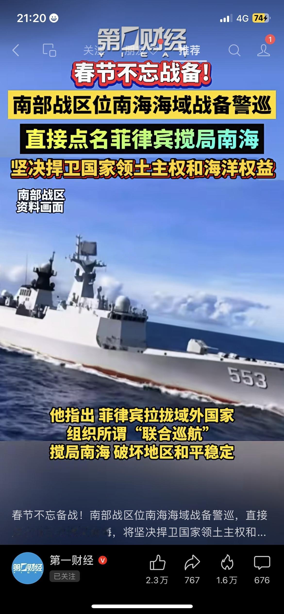 春节期间,南部战区在南海组织海空兵力战备警巡,维护国家主权安全和海洋权益。 有国才有家,强大的国防,是人民安居乐业的坚实保障。 正是因为有子弟兵坚守岗位,我们才能安心过节、安稳生活。 致敬坚守一线的守护者,为祖国的稳定与强大点赞。 哪一刻让你觉得特别有安全感? 南部战区 南海 国家安全