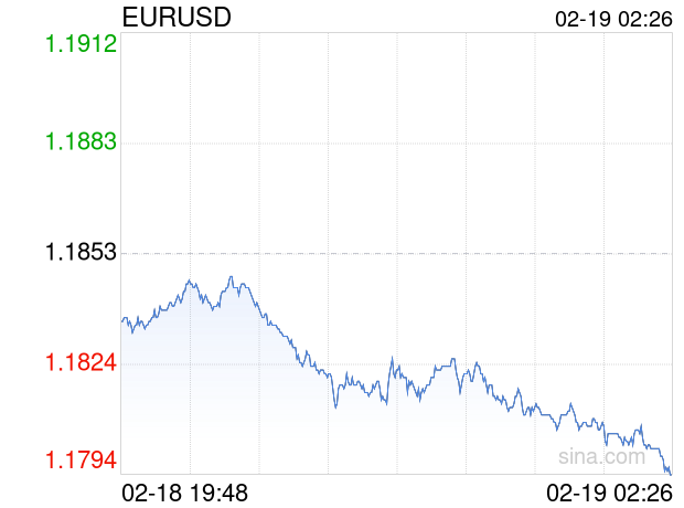 新浪外汇消息2026年02月19日,截至02时26分,外汇市场上欧元兑美元汇率跌破1欧元兑换1.1793美元。跌幅为-0.5062%