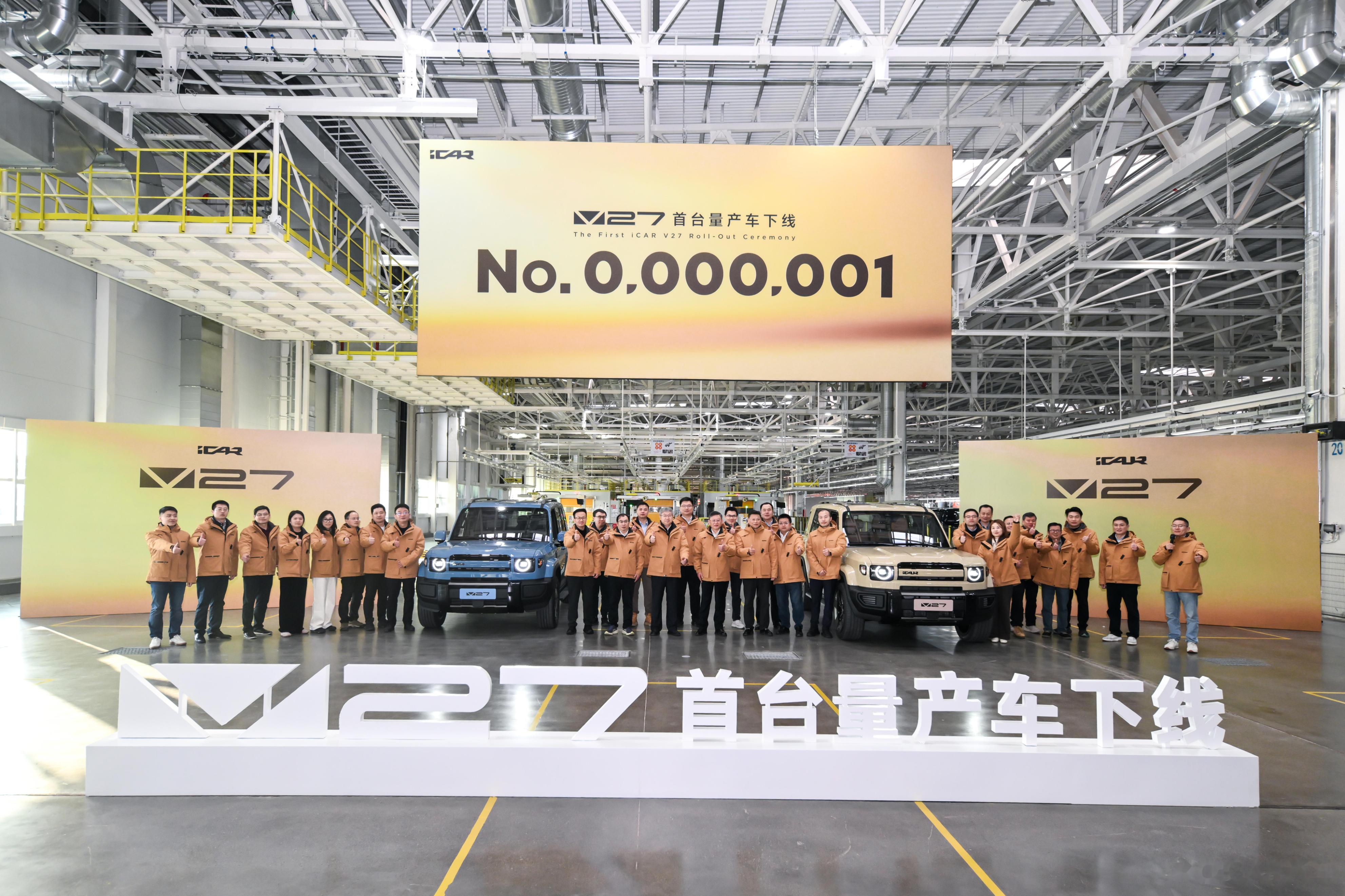 1月10日,芜湖超级工厂的生产线上,一台造型硬朗的方盒子SUV缓缓驶下,现场响起阵阵掌声。这台被网友称为“平民版路虎卫士”的车型,正是奇瑞iCAR品牌的全新旗舰V27,其首台量产车的正式下线,意味着这款备受关注的智能硬派SUV距离消费者又近了一步,预计2026年第一季度将全球上市。