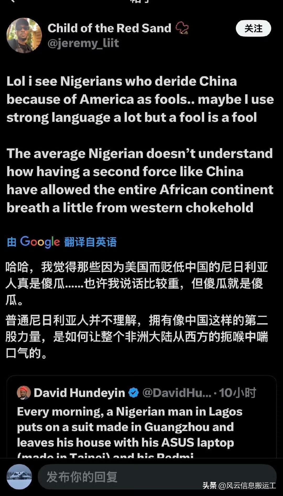 非洲网民热议中国发展给非洲和世界带来的正向作用,观点清醒又犀利: 1.中国19