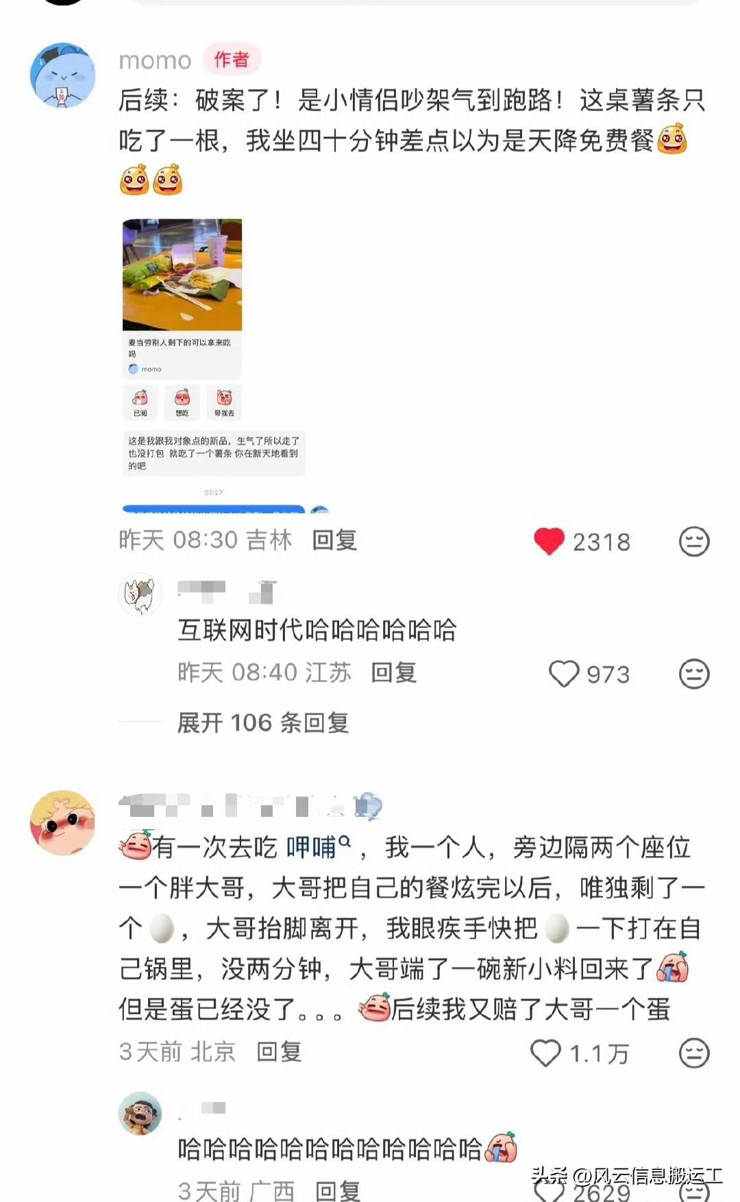 网友发帖,麦当劳别人剩下的可以拿来吃吗? 坐了半个小时了,还没人回来吃,我可以