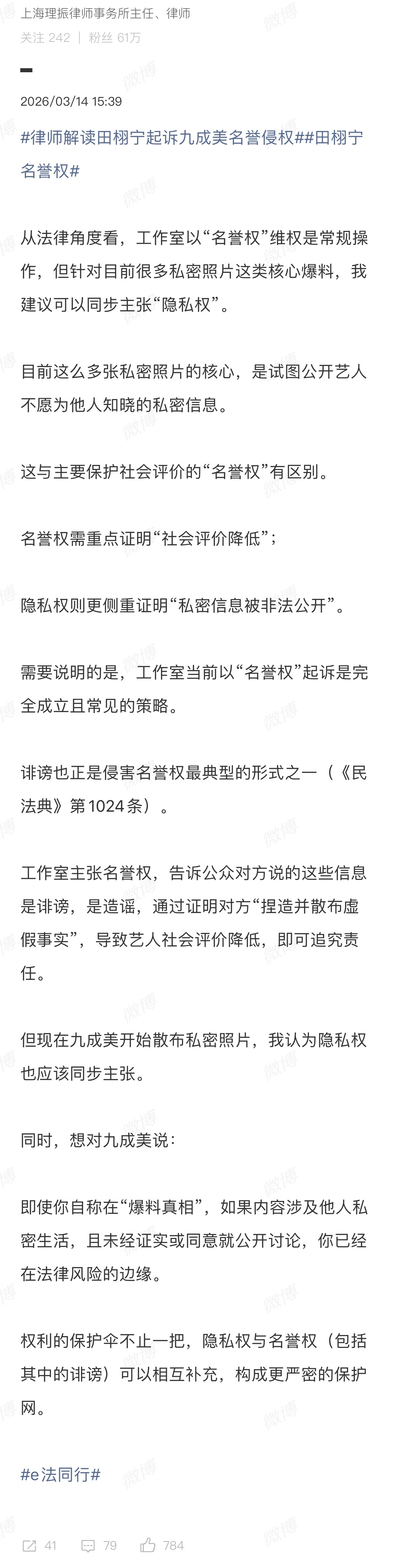 有专业律师解读田栩宁起诉事件田栩宁 九成美