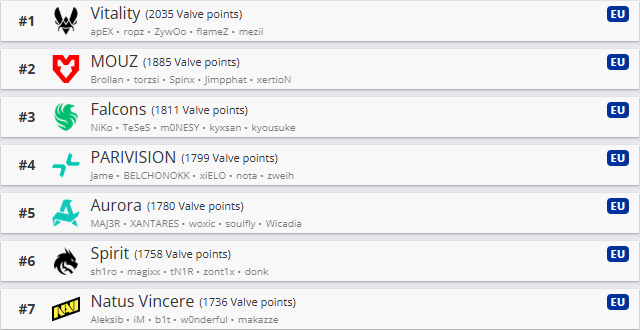 目前,NAVI排名欧洲VRS第7位,倘若他们今夜夺冠EPLS23,那么实时排名便将反超Spirit,进入IEM科隆Major第三阶段的欧洲直邀范围。