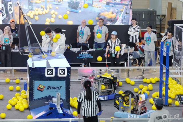 擂台上,当作“燃料”被“疯抢”的黄球,在各路机器人之间到处翻飞腾挪。参赛团队在规定时间内完成“燃料”补给、跨越障碍、攀登“塔楼”等得分任务。比赛开始后的前20秒,这些车形机器人处于自动运行状态,无需操作手操控,而自行将“燃料球”运送至所属的“枢纽站”。“燃料”可预先装载到机器人上,也可从人类玩家处获取、在“仓库”领取或在场地中央拾取。
