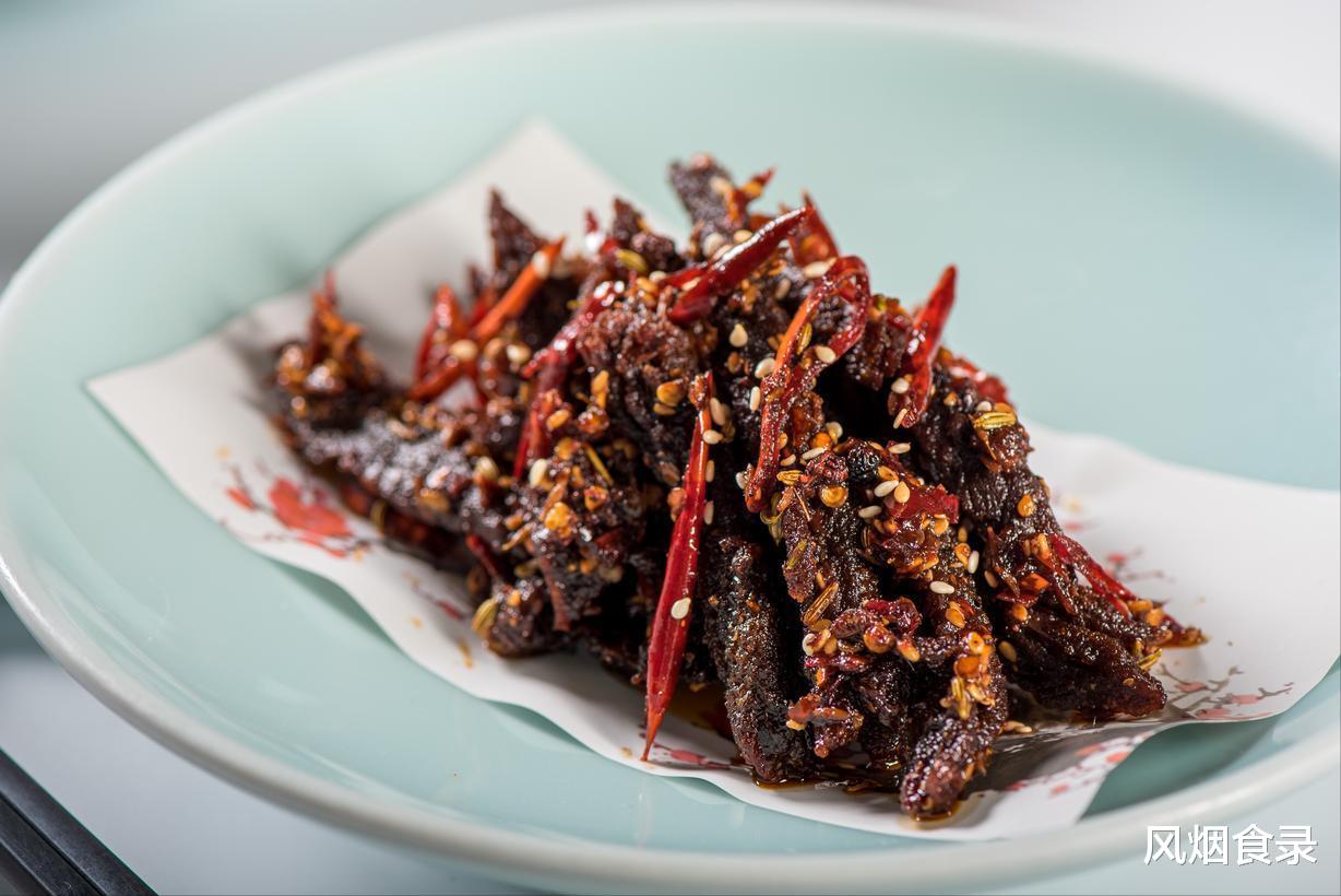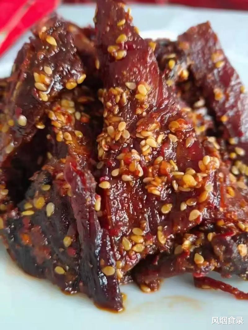 选黄牛后腿肉,切条蒸熟,拌上醪糟、五香粉、辣椒面,下油锅炸香,撒把芝麻,香得人直吞口水!