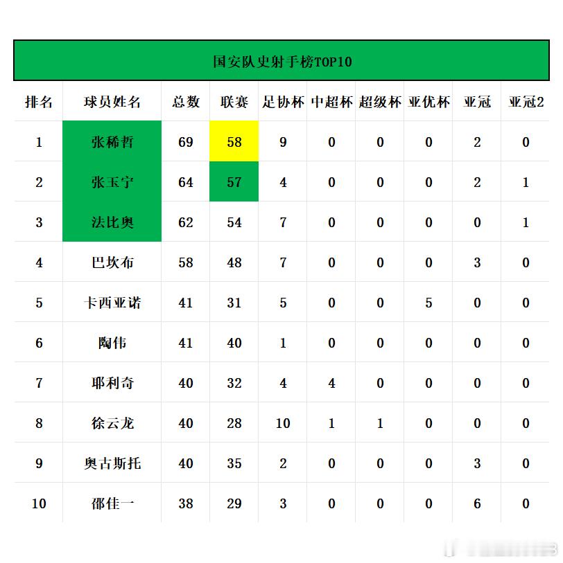 ✨【值得期待的时刻】⚽张玉宁:本轮若取得进球,联赛进球数将升至58球,追平队史联赛射手榜榜首的张稀哲。【图9】📊国安队史射手榜TOP10。