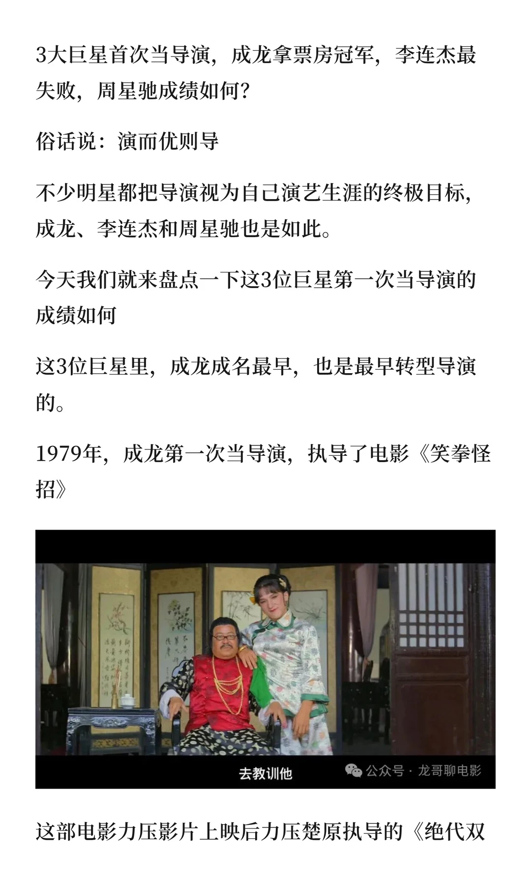3大巨星首次当导演,成龙拿票房冠军,李连