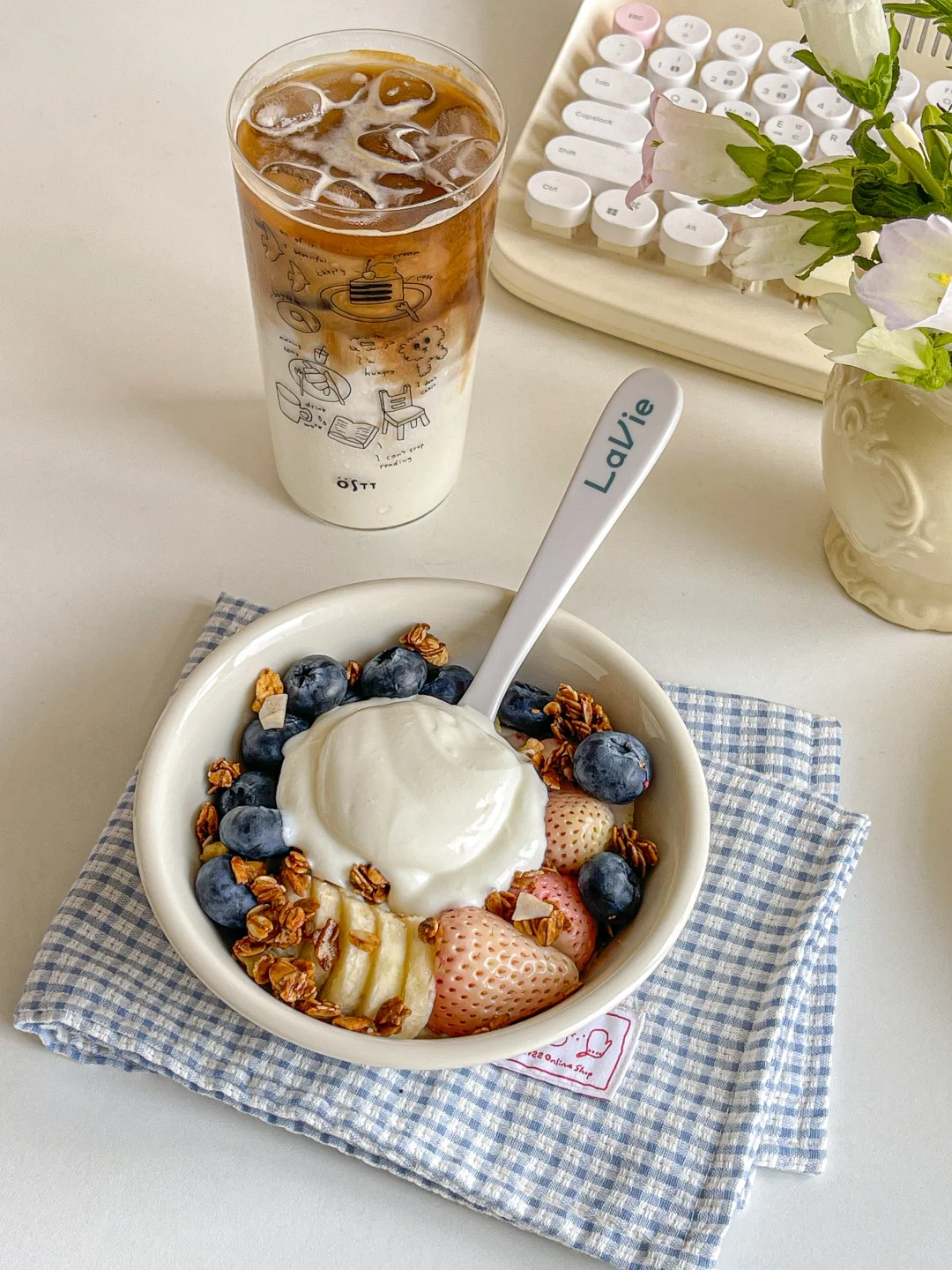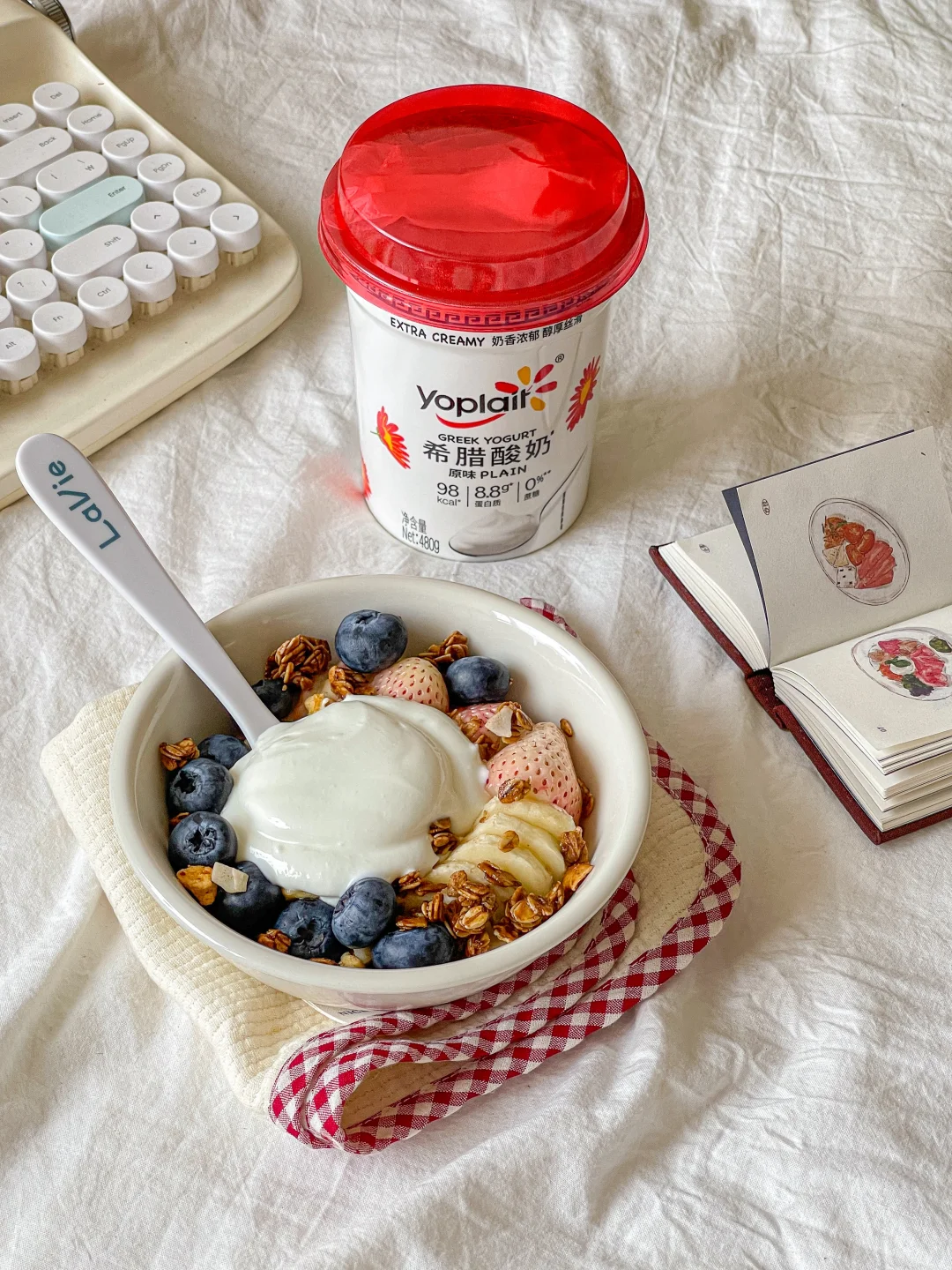 还做了一份希腊酸奶碗 喜欢的水果和烘焙麦片搭配优诺希腊酸奶 清爽绵密🍃