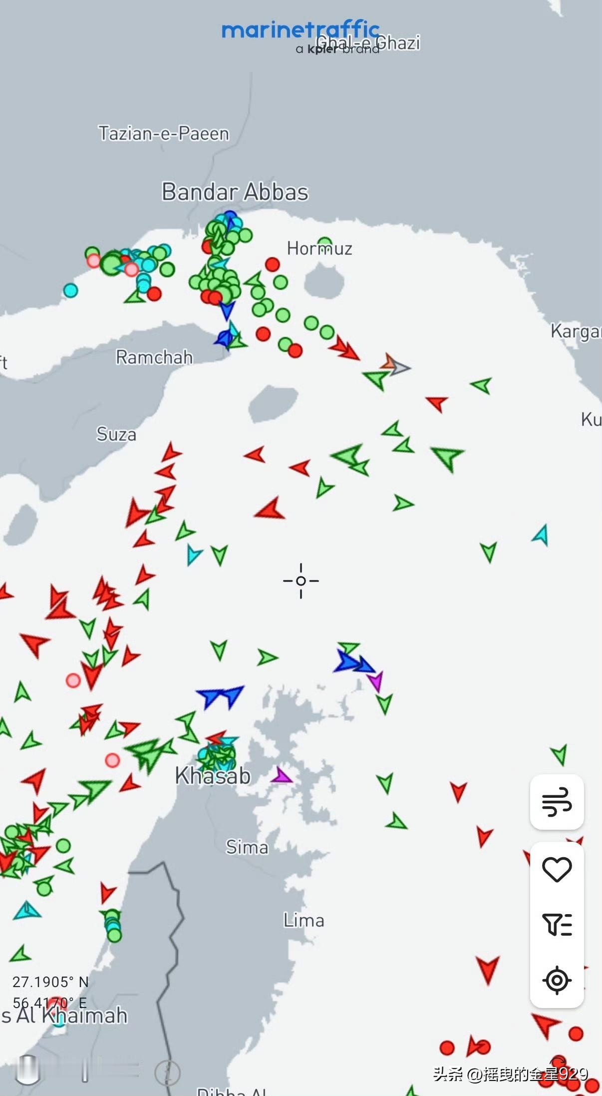 而根据Marinetraffic船舶信息可以看到,无论是油轮还是货轮,大量此前准备穿越霍尔木兹海峡的船只都在调头,返回波斯湾以内。