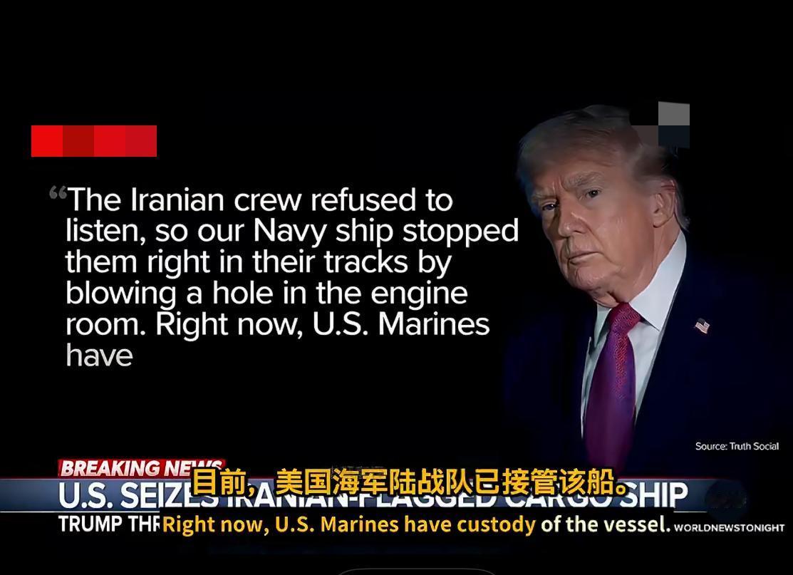 特朗普在社交媒体证实,美军导弹驱逐舰在阿曼湾拦截试图突破海上封锁的伊朗货船“TOUSKA”,开枪击穿机舱并强行控船,美海军陆战队已登船接管。此前双方已在海上发生交火,地区紧张局势持续升级。