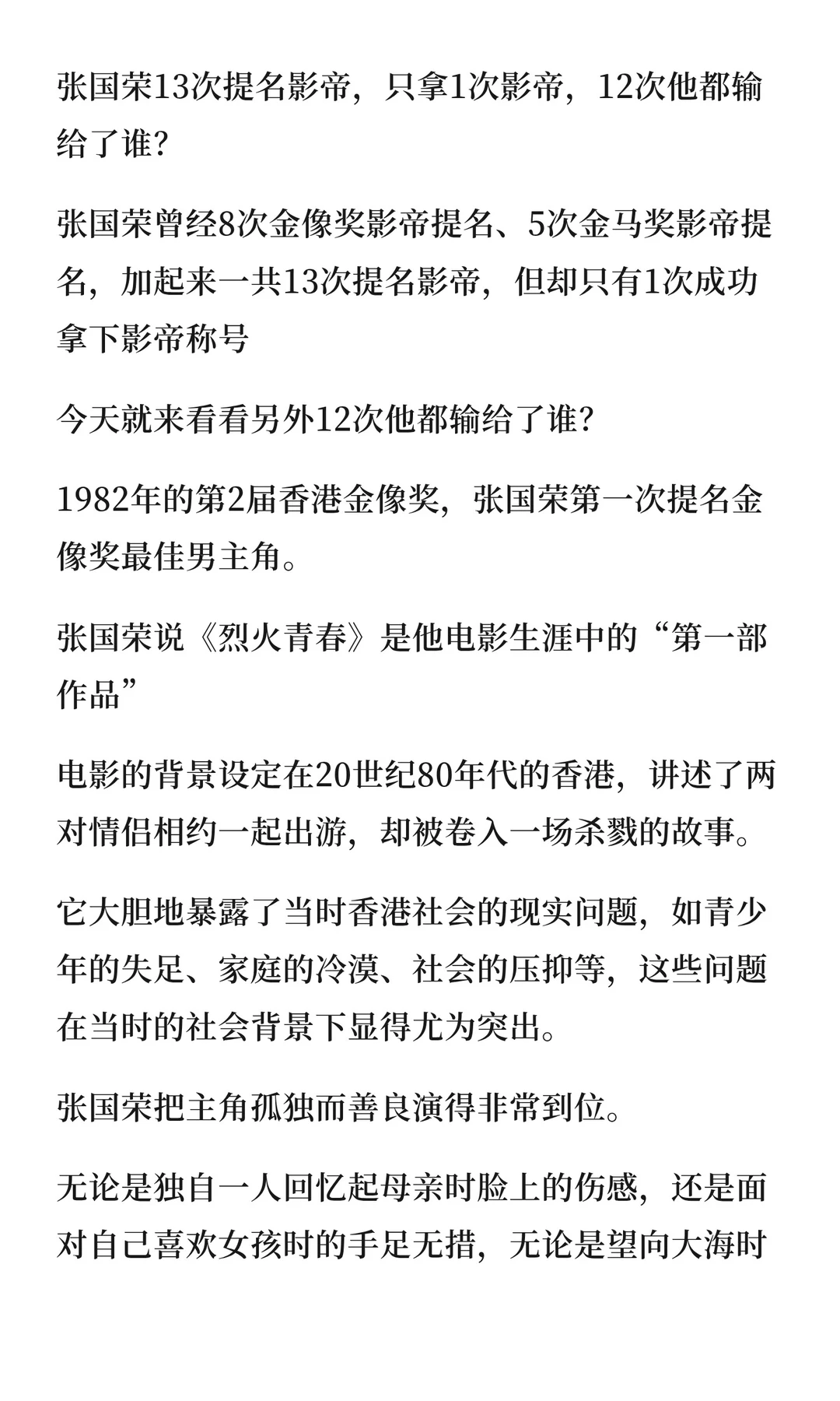 梁家辉演技很好,在台湾金马奖影帝却不行!6次入围影帝,只获奖1次,男配角也只是入