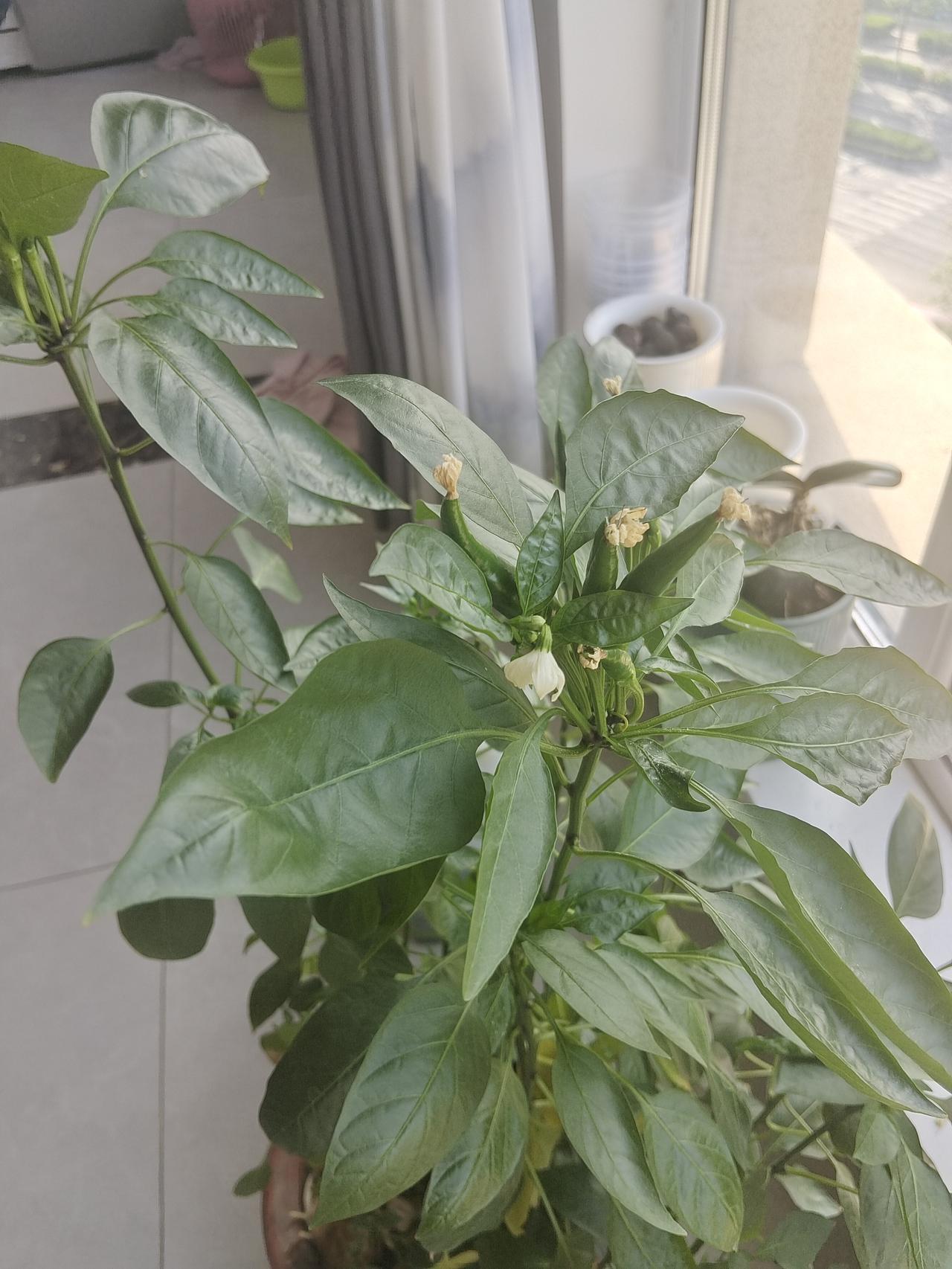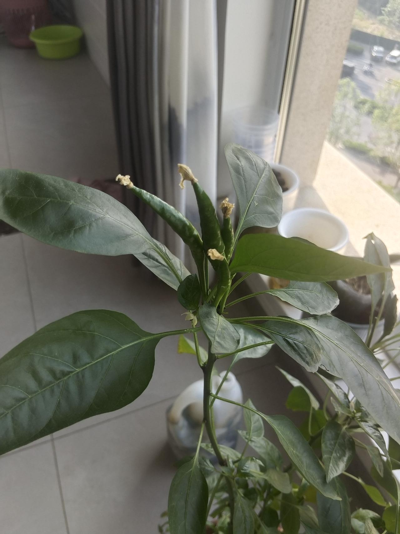 今天把阳台的辣椒都摘了,总共摘了有十五六个吧,比起上个月收获满满,感觉主要得益于人工授粉。