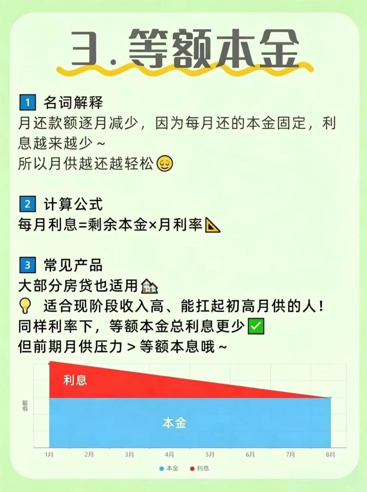 第三种等额本金,每月还的本金固定,利息越还越少,月供逐月递减,总利息能省一大截,就是前期月供高,适合收入高、想提前还款的人。