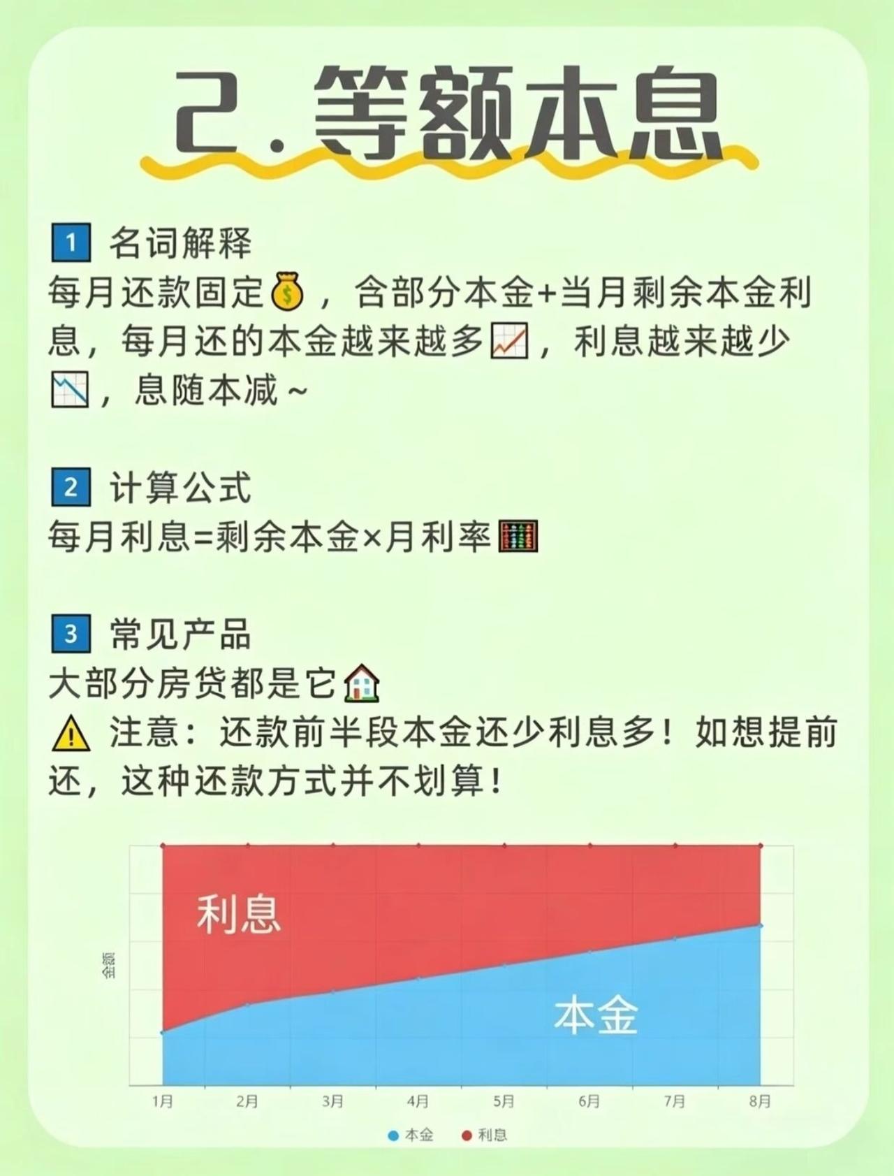 第二种等额本息,房贷最常见,月供固定,前期利息多本金少,适合收入稳定、不想前期压力大的上班族。