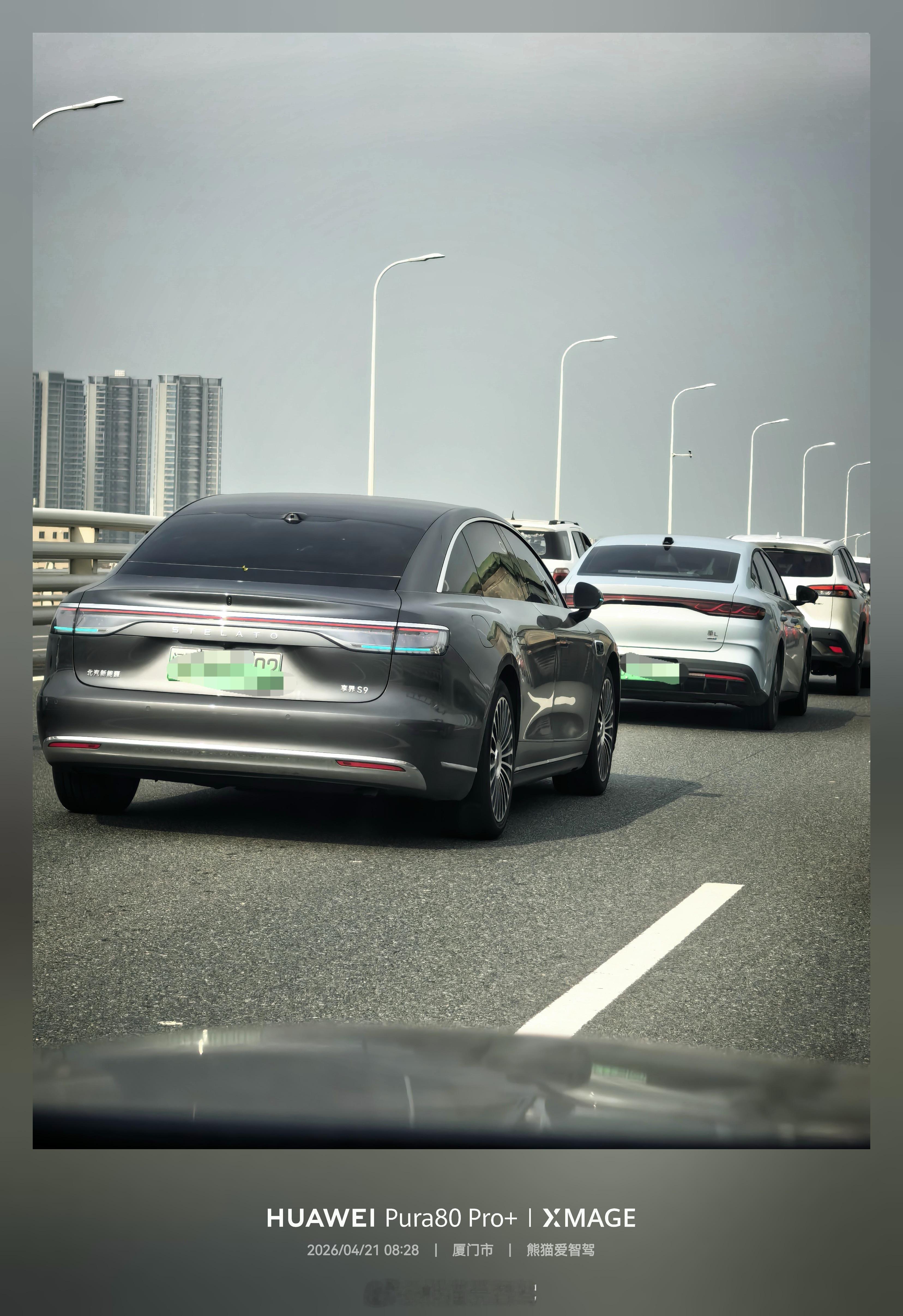 车流中的鸿蒙智行 车主们,开着智驾小蓝灯感觉好酷呀!