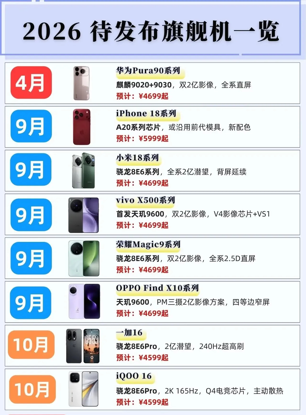 网友神通啊这么早就把2026年即将发布的旗舰手机给列出来了,下面有你们期待的手机