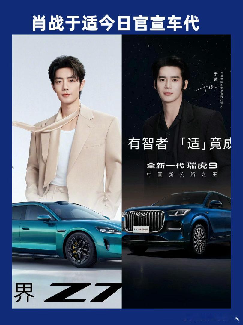 肖战、于适今天同时官宣车代。肖战:鸿蒙智行·尚界品牌代言人肖战代言尚界于适:奇瑞中国新燃油全球代言人