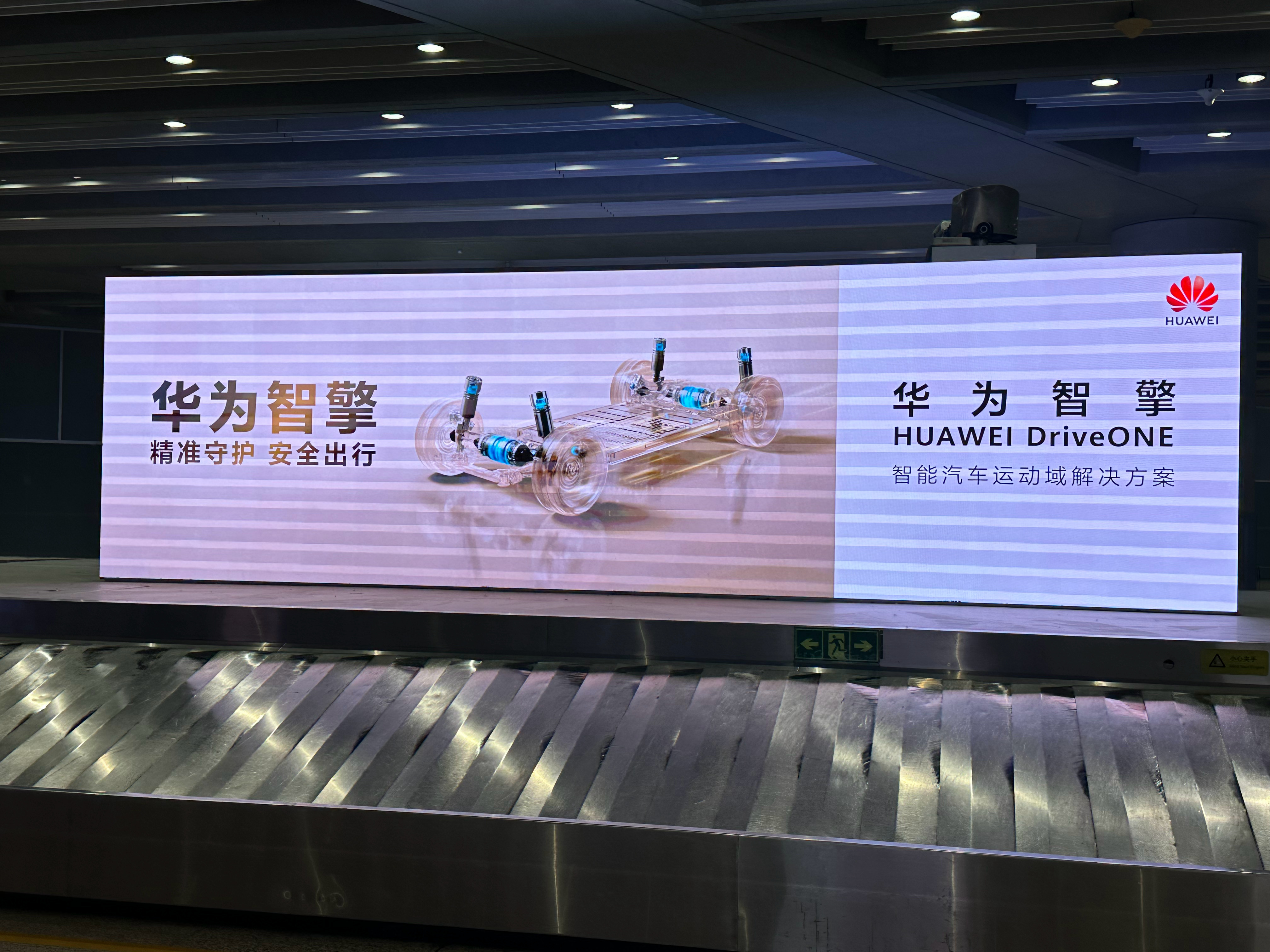 在机场等着无聊,一扭头好家伙,华为DriveONE 的大海报!这不是咱家车的“心脏”嘛。