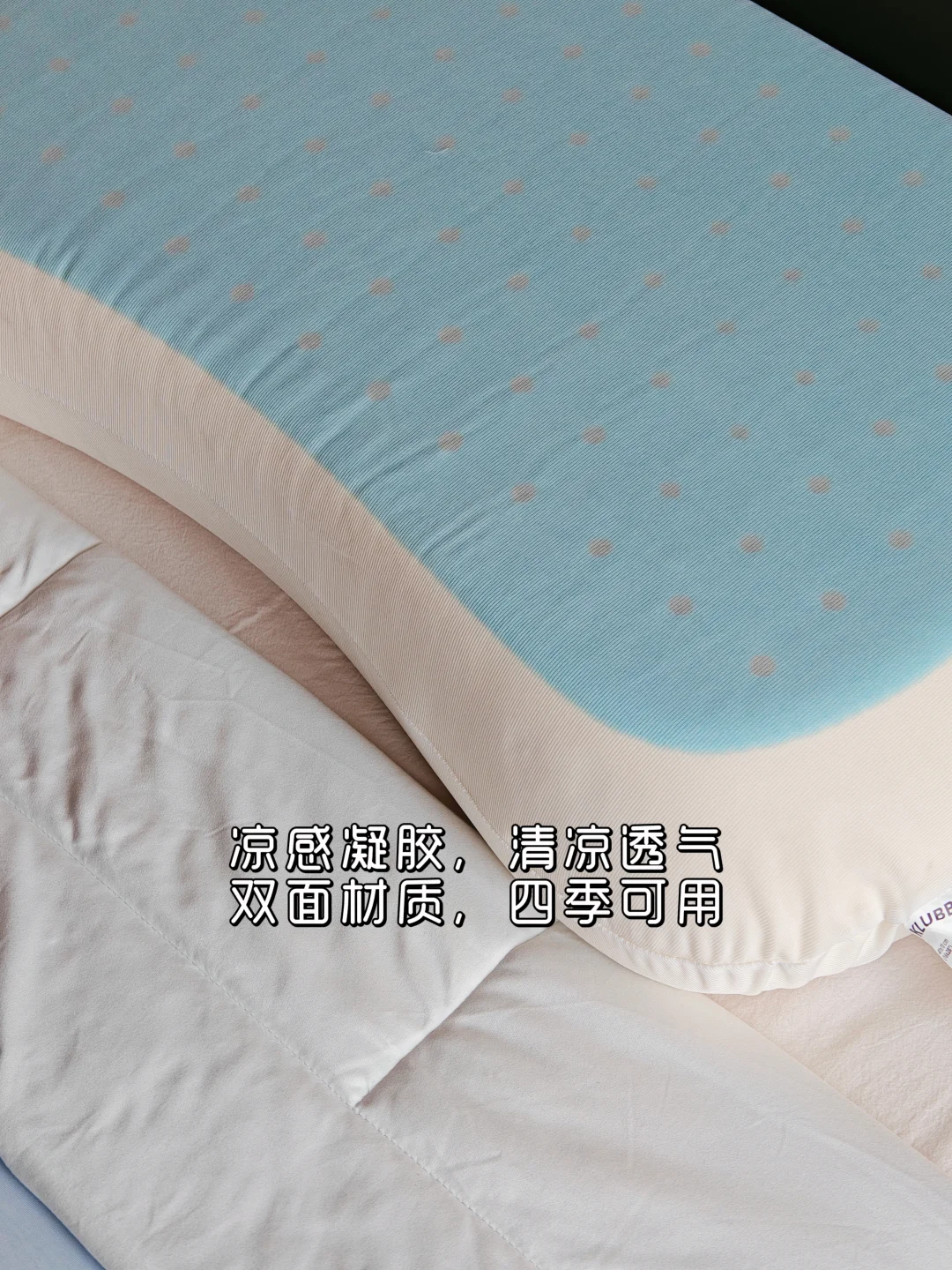 一面是凉凉的凝胶层,躺下去瞬间降温;另一面是柔软的针织面料,亲肤不冰。