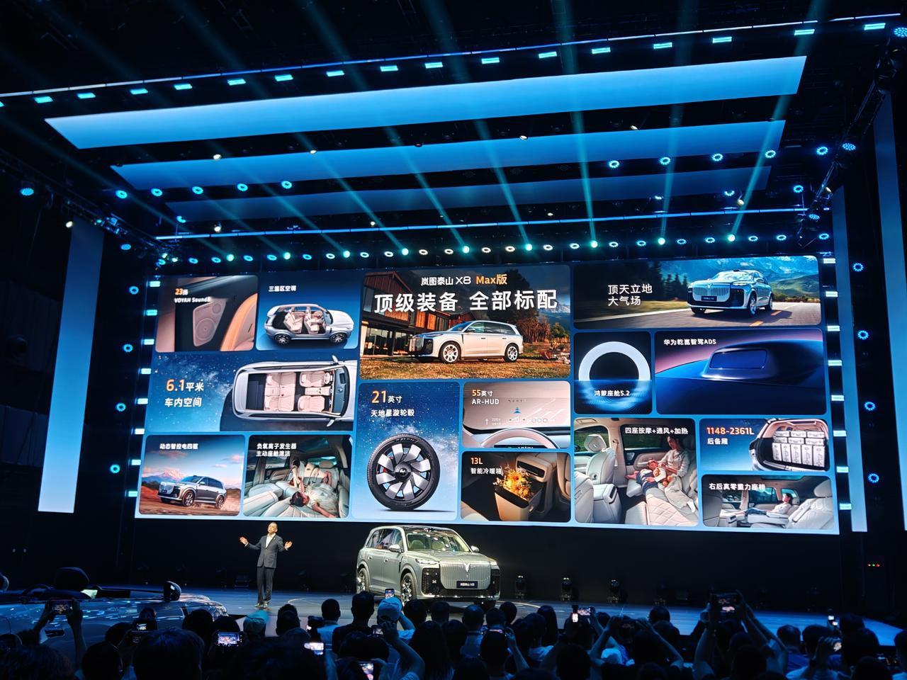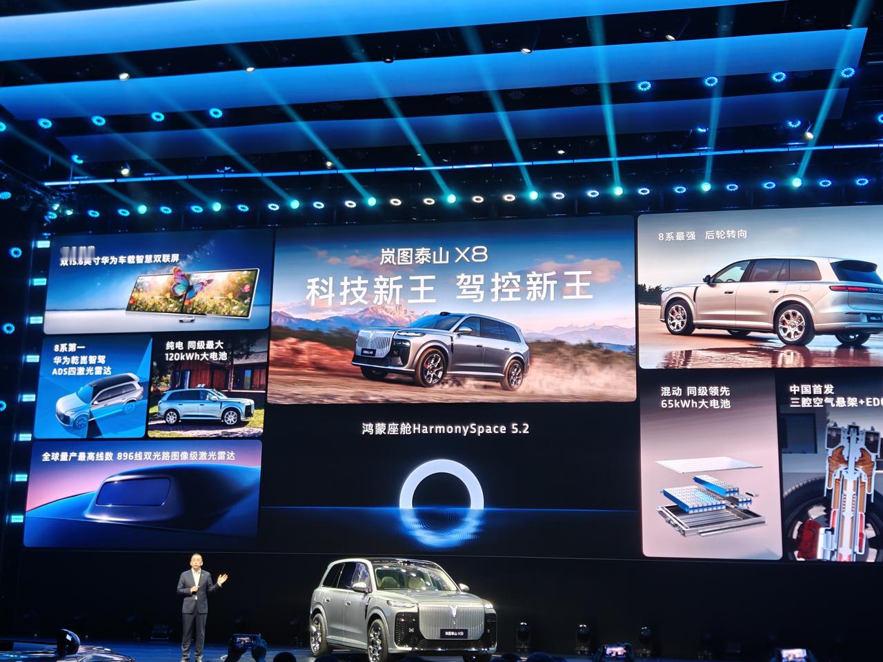 在智能化方面,泰山X8搭载鸿蒙智能座舱和乾崑ADS智驾,全方位借力华为,并且配备了行业量产线束最高的华为896线激光雷达。