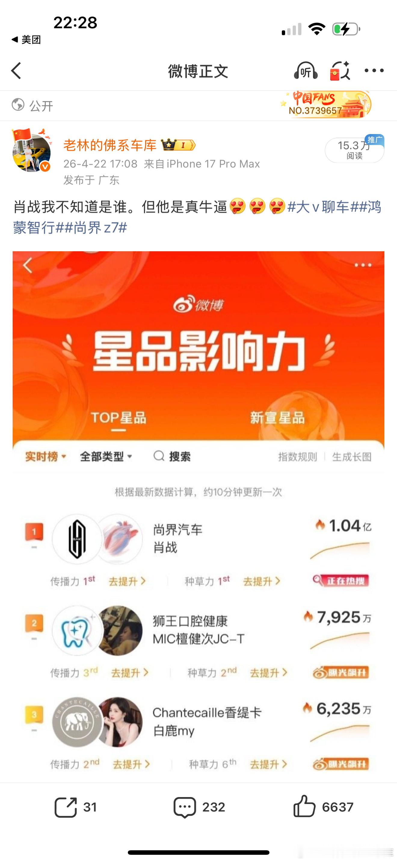 以前不知道肖战今天算是知道了太猛了尚界这个代言人太强了我现在也是他粉丝了肖战大v聊车尚界Z7大定27分钟破12000台