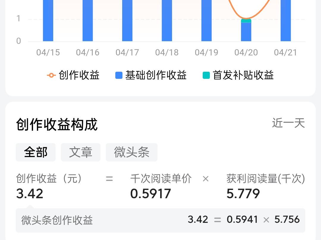 今日头条创作小结:收益3.42元,作品阅读量6192,新增粉丝8位,千次阅读单价0.5917。同时已完成699.16元创作退税申请,小小收获,满心欢喜。