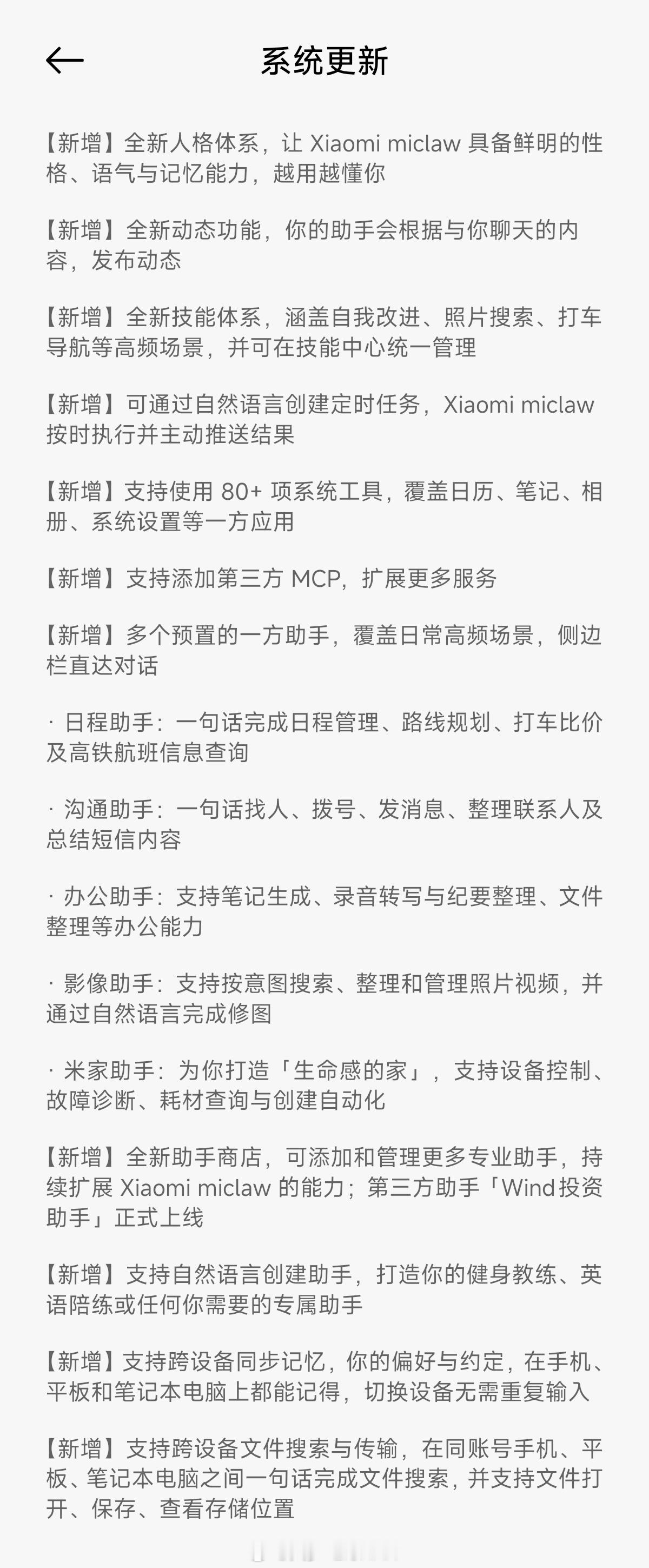 miclaw这版本更新内容蛮多现在基本上就是打通了手机平板电脑互通的问题,可以互