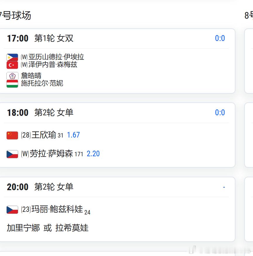 王欣瑜 vs 萨姆森 北京时间:不早于18:30