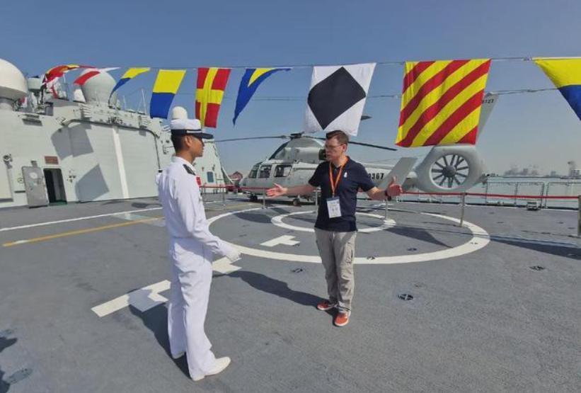 这次开放日的排面直接拉满:万吨大驱南昌舰舰艏的主炮高高扬起,舰载直升机就停在甲板上等着大家合影,官兵们还掏出了自己的军帽给小朋友戴,甚至允许大家摸一摸平时只能在新闻里看到的垂直发射系统。最戳人的是个细节:有个老人问舰员“我们现在是不是再也不用受欺负了”,小伙子敬了个礼说“您放心,我们在这守着,谁也来不了”,周围瞬间响起一片掌声。