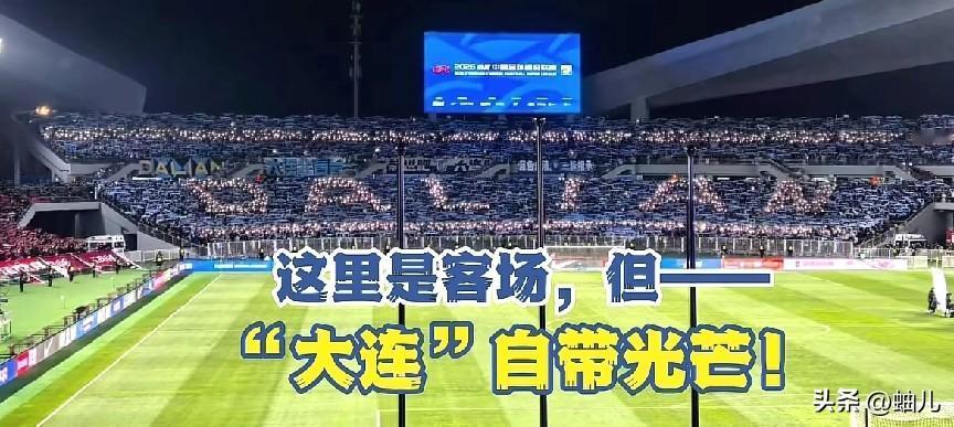 这场德比除了比分外,还有让大连球迷自豪的就是远征沈阳的大连球迷,他们除了整齐有律, 气势如虹的助威呐喊声,特别震撼的是在客场用手机电筒拼出了"大连"tifo。