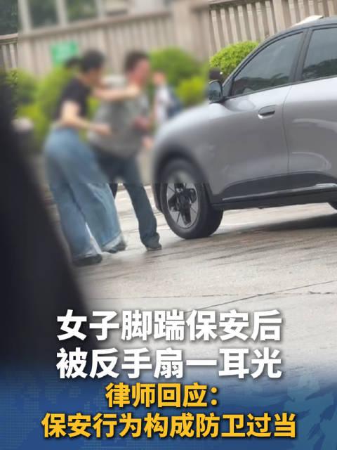 女子脚踹保安后遭猛烈回击,这一巴掌是正当防卫还是过当反击?