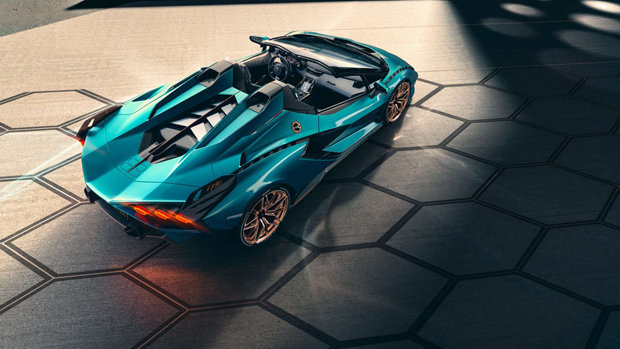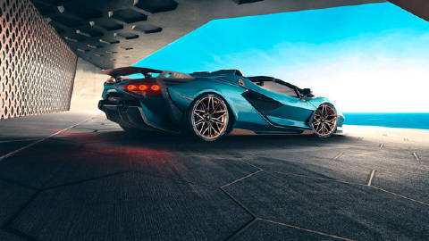 兰博基尼 Sián 敞篷版来袭!当你置身于这款超跑之中,头顶是无垠开阔的天空,仿佛能与未来科技来一场亲密邂逅。它搭载着先进的混合动力技术,动力强劲。在都市的车水马龙间,它无疑是新的霸主,尽显王者风范!跑车
