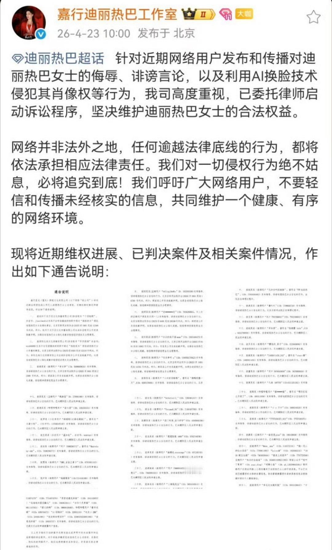 迪丽热巴这次全平台告了上百个,这个力度
