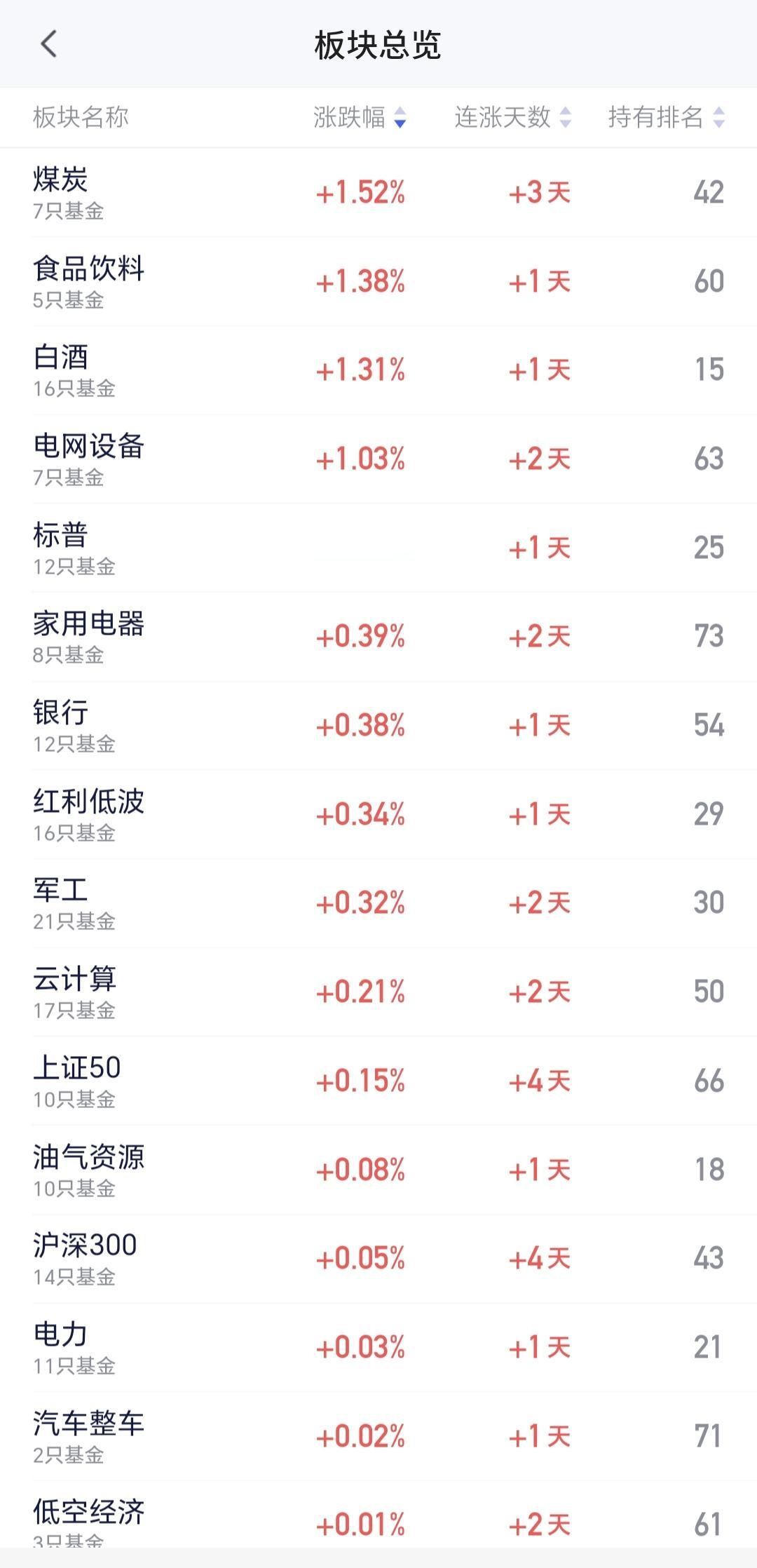 白酒板块来了一个难得的上涨,现在盘中估值上涨了1.31%,持有人数在所有板块当中排名第15位。