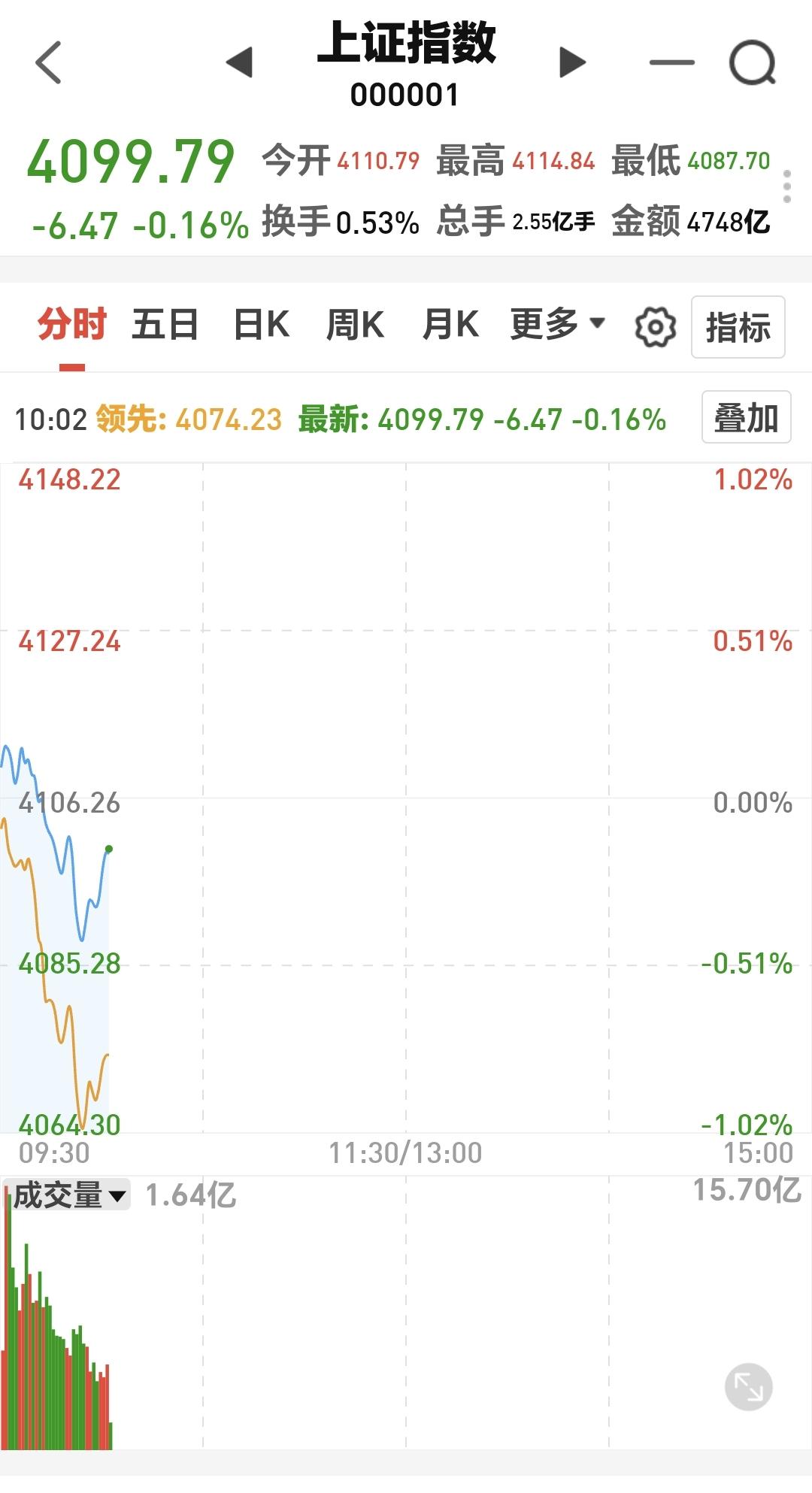 现在盘中五天线位置是4084点,盘中最低4087点,并没有跌破五天线,后面继续观察会不会跌破五天线,这要能够保持在五天线之上震荡,就不要过分担心,现在为止的震荡幅度都是正常的。