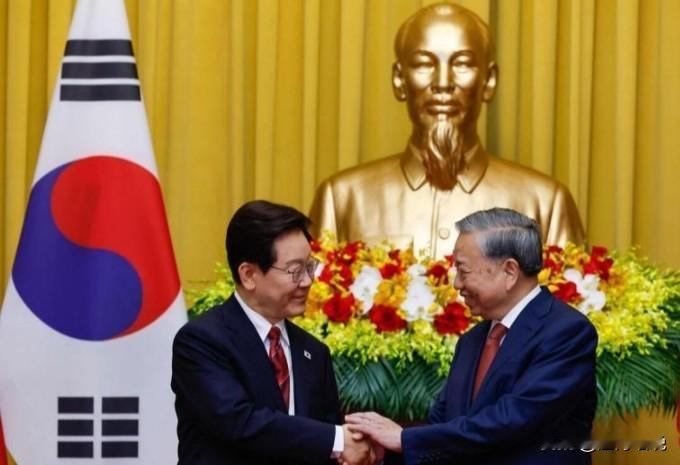 李在明还把双方合作视为全球核心合作伙伴,还真给足了面子;并直言:韩国是越南实现2045年高收入目标的最佳合作伙伴。说白了,越南要崛起,韩国也要分一块蛋糕。